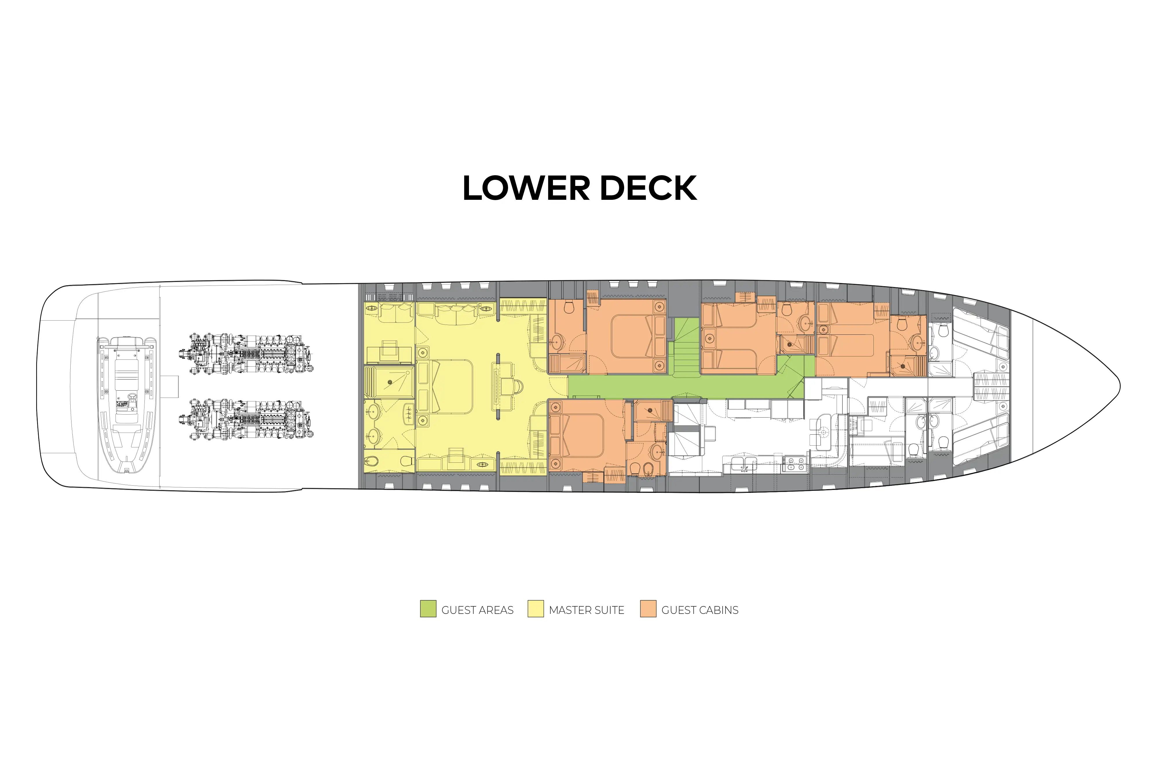 Forward of the owner’s suite there are two VIP double suites, a convertible suite and a twin suite with an additional berth, completing her highly versatile accommodation. CRAZY also sleeps up to five crew.