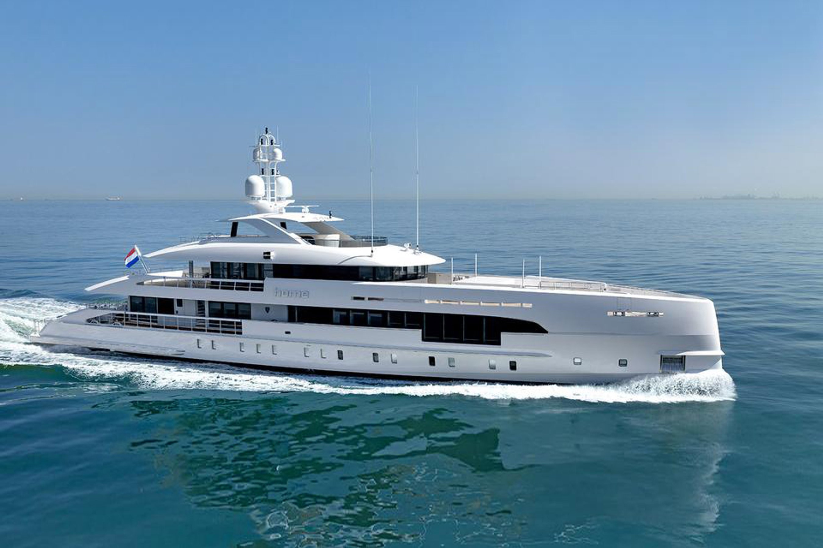 The 49m (160.7ft) HOME was built in full aluminium to ABS classification and delivered by Dutch shipyard Heesen in 2017. She is the first yacht to combine Van Oossanen's super-efficient FDHF hull design with hybrid propulsion, reducing fuel costs, emissions, noise and vibration. With a beam of 9m (29.5ft) and interior volume of 499GT, she is a popular charter yacht but would suit private use well.