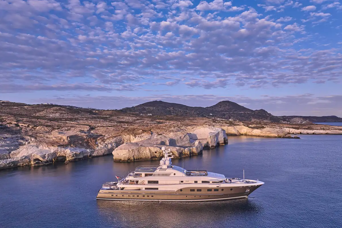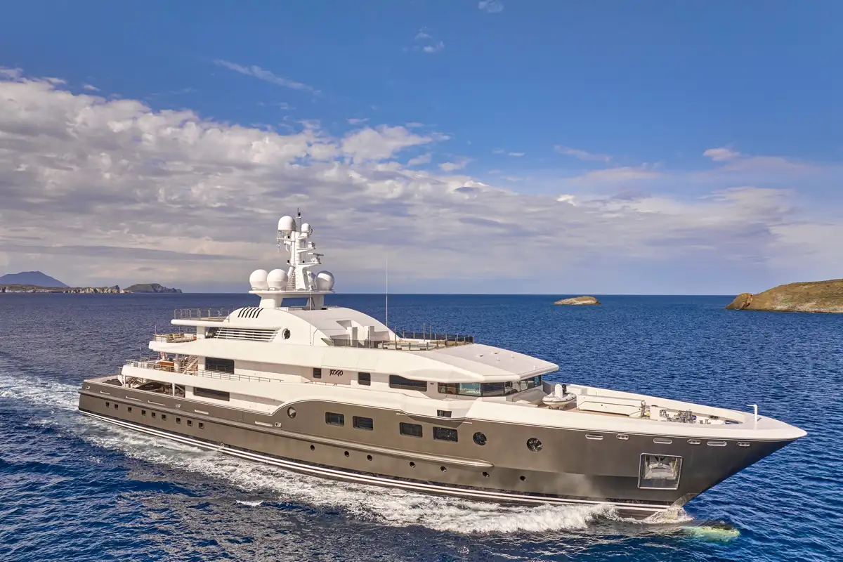 KOGO is a 71.7m (235.2ft) yacht with an ice-classed steel hull and aluminium superstructure built to Lloyd’s classification and MCA compliance, and delivered by French shipyard Alstom Leroux Naval in 2006. Her exterior design is by Tim Heywood, Terence Disdale Design created her interiors and naval architecture is by Burness Corlett Three Quays. The result of an extraordinary collaboration, KOGO won the World Superyacht of the Year award in 2007.