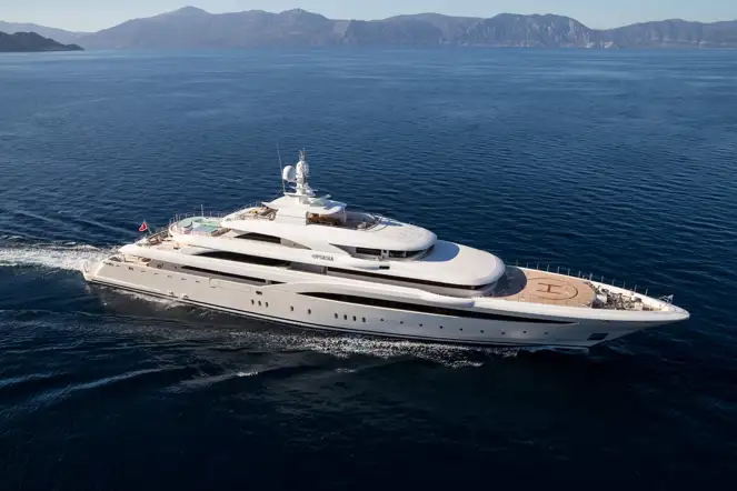 Powered by twin 3,386hp Caterpillar diesel engines, O’PTASIA has a top speed of 20 knots, a cruising speed of 16 knots and a maximum range of 10,015nm. Her zero speed stabiliser system ensures a smooth cruising experience, both underway and at anchor.