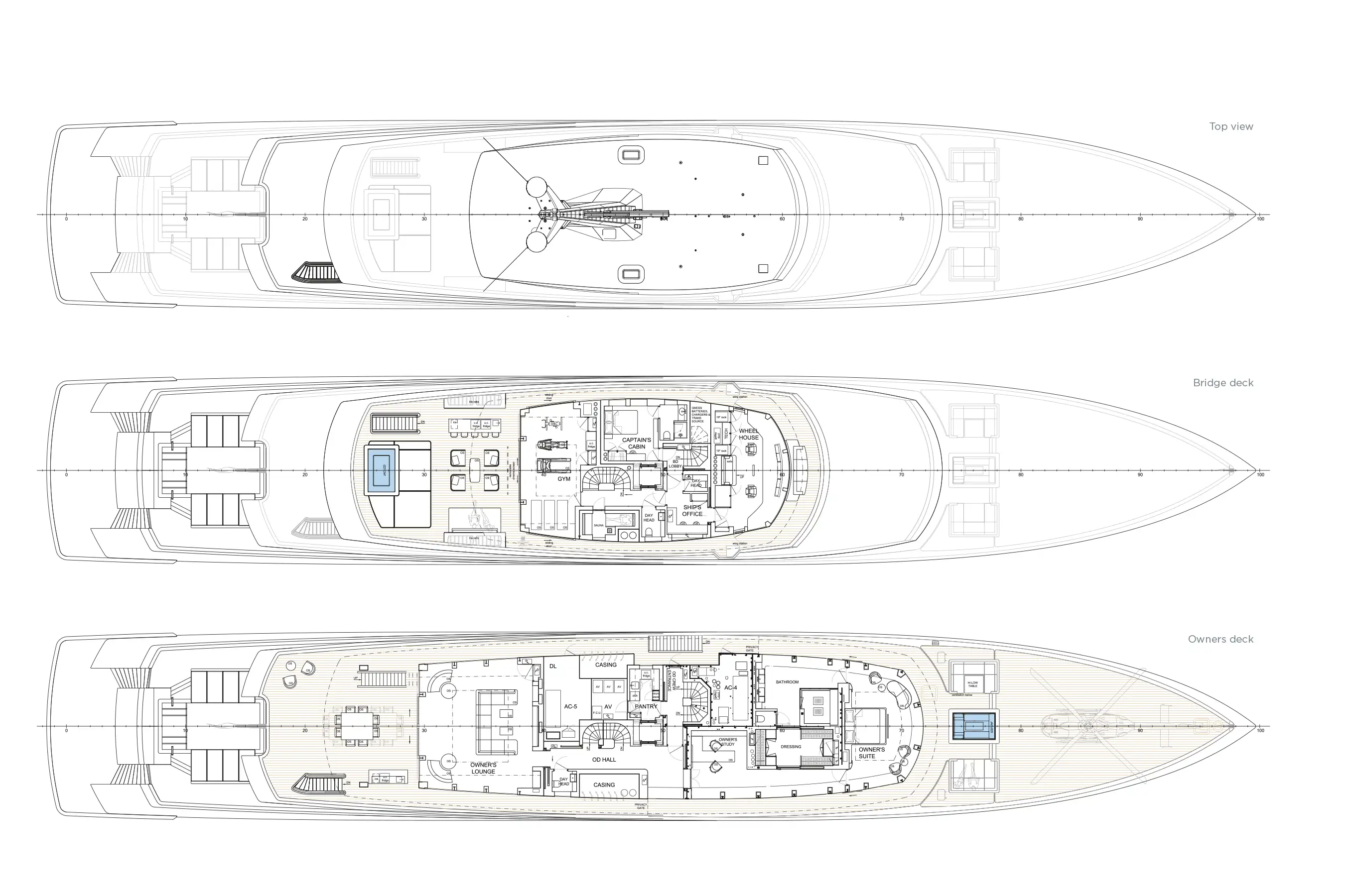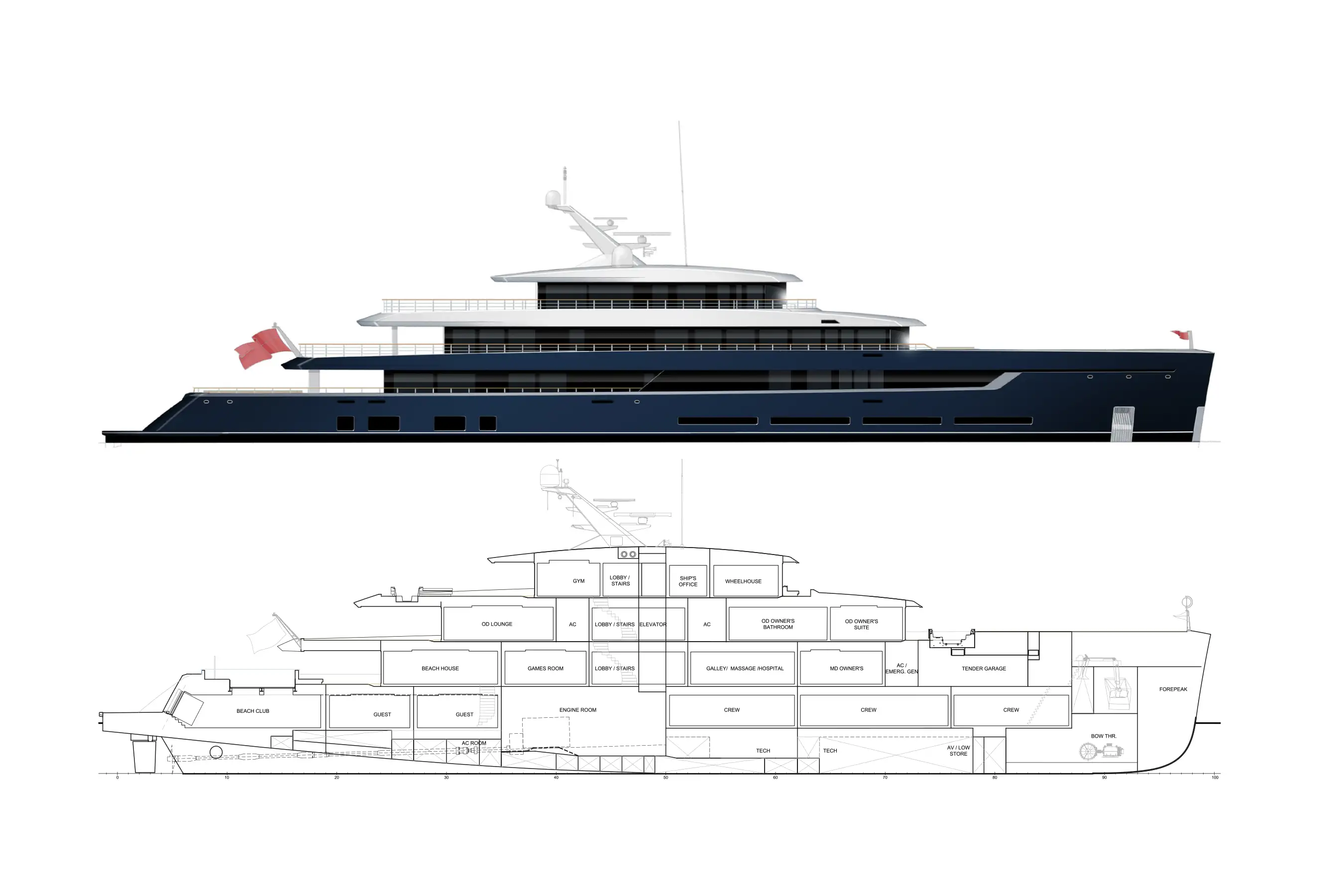 | Tenders | Space for a 9.8m tender, rescue tender and toys to be stored forward on main deck forward |