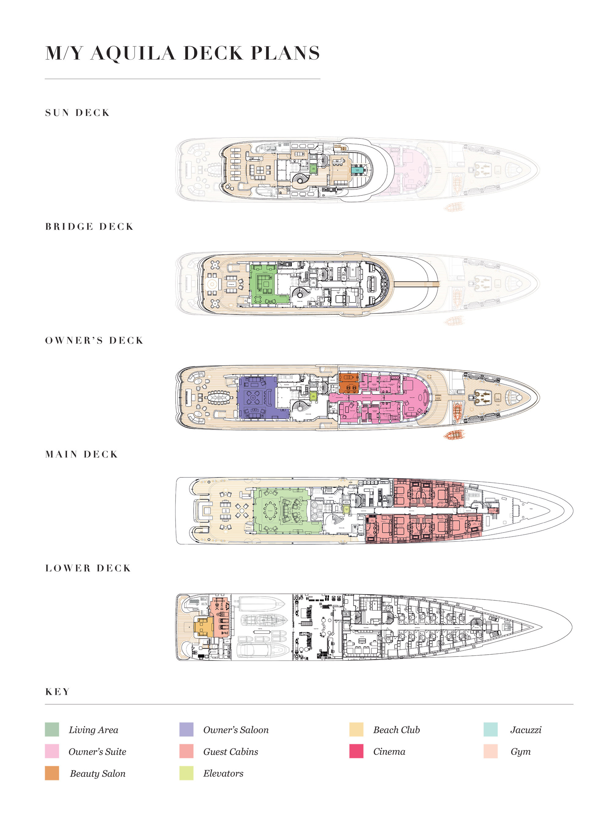 - Spa area and massage room, with additional massage room on sun deck