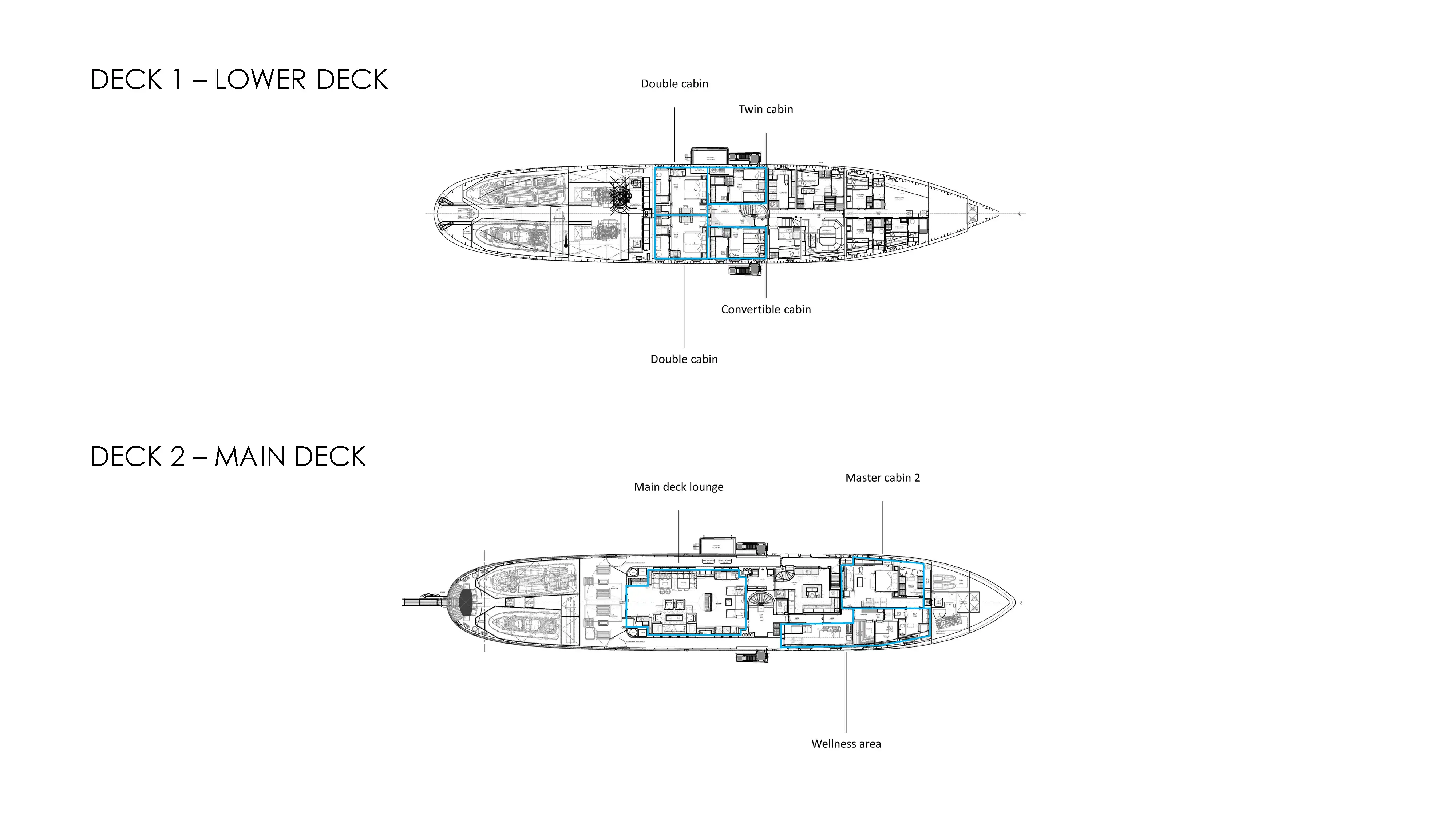 - Two beautifully appointed master cabins