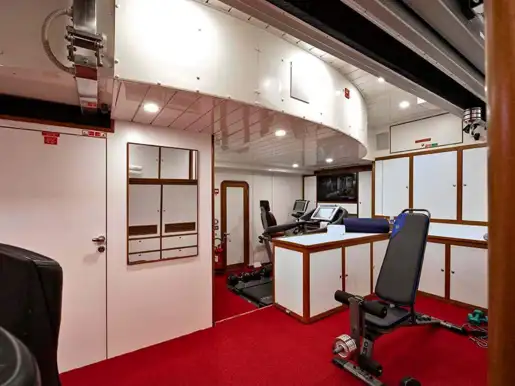 A staircase leads to the lazarette to access the hydraulic swim platform for easy tender boarding and allows guest to make full use of the water toys with direct access to the water. A side boarding ladder is also available.