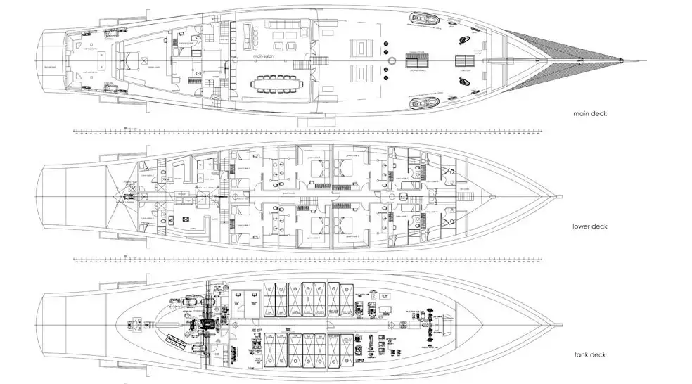 She was custom built in the traditional way in Ara, Sulawesi, incorporating refinements to enhance her intrinsic strength and stability. She delivers the ultimate in comfort, elegance, and safety while maintaining the warm ambience of traditional Indonesian hospitality and retaining the elegance of the traditional vessels.