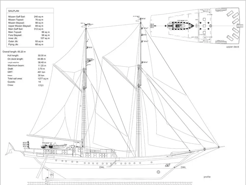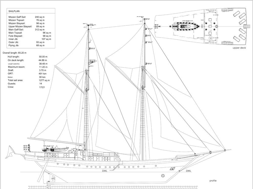 In crafting the vessel, they succeeded in combining the authenticity and charm of the Indonesian two-masted trading ship of yore with the latest concepts in yacht design and technology producing an exceptional vessel with a distinguished pedigree.