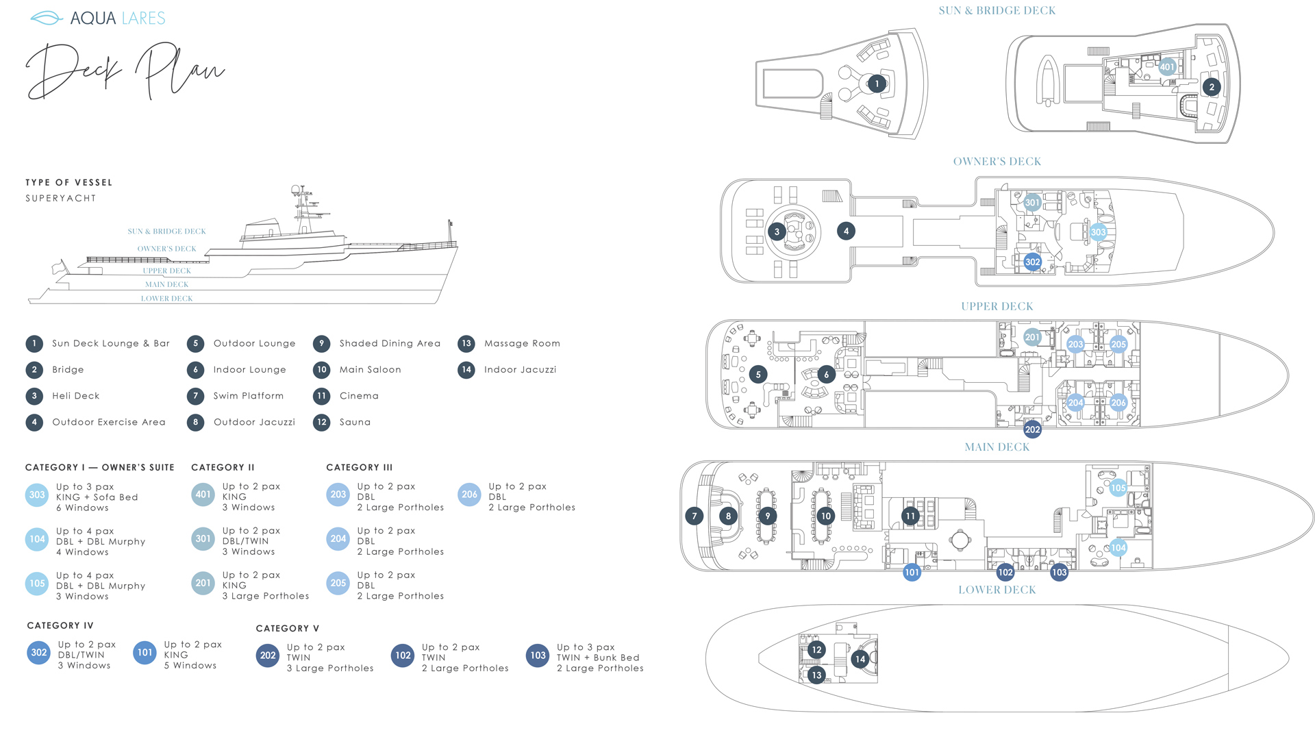 | Cabin types | 11 (8 × double, 2 × double/twin, 1 × twin) |