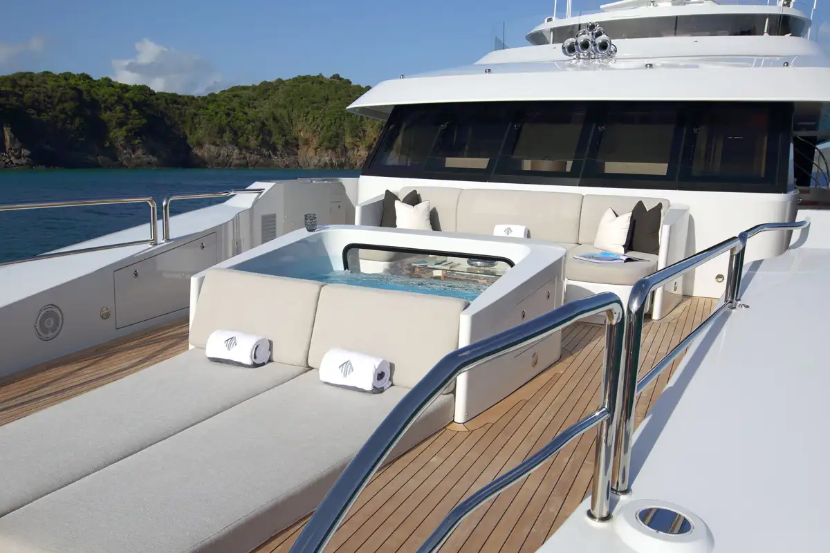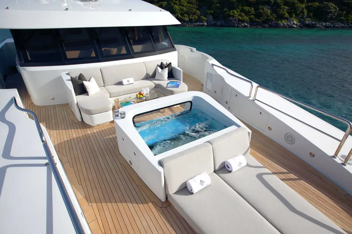 - Sleek foredeck with moon jacuzzi & plush sunpad