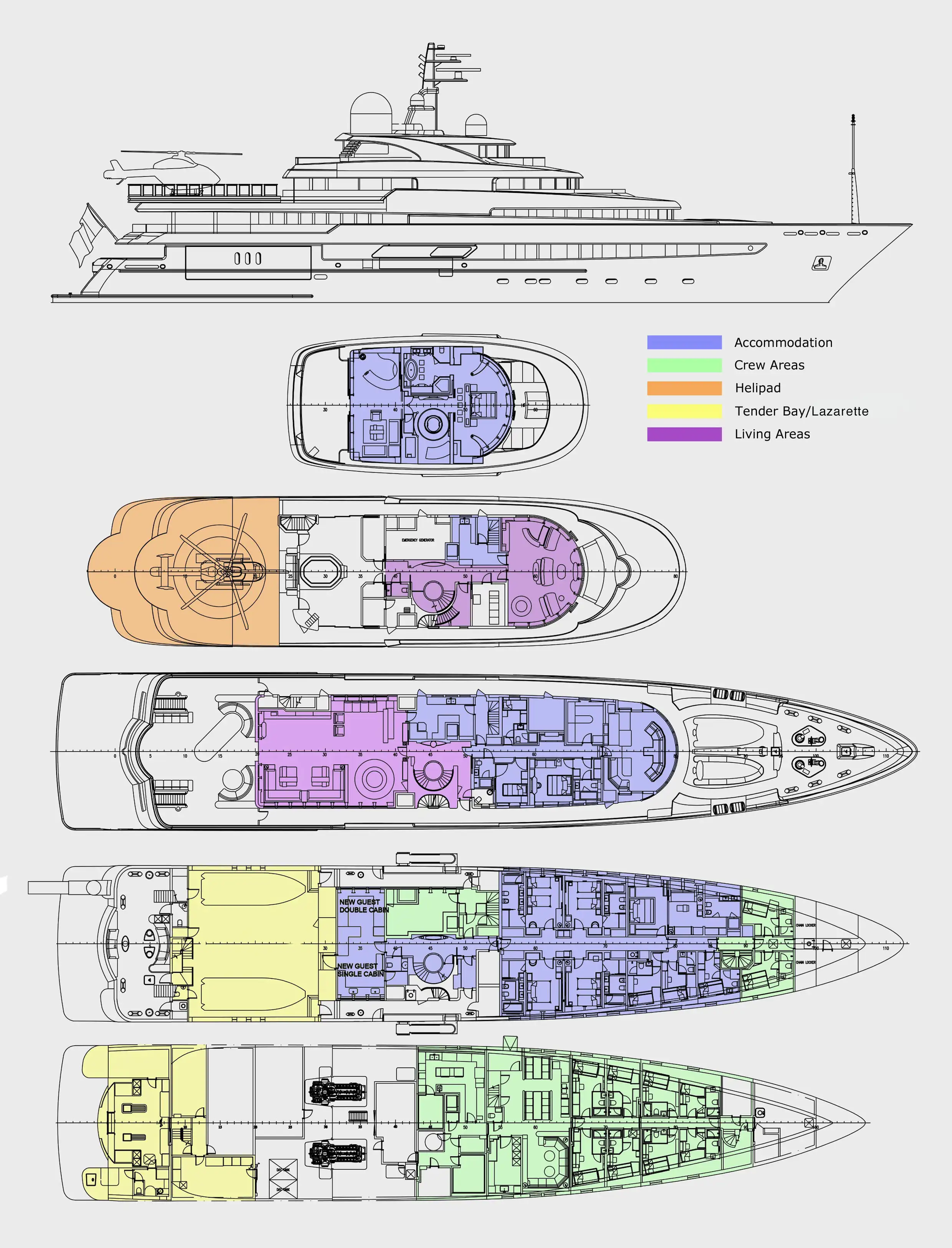 - Zero speed stabilisers to reduce any rolling motion while at anchor