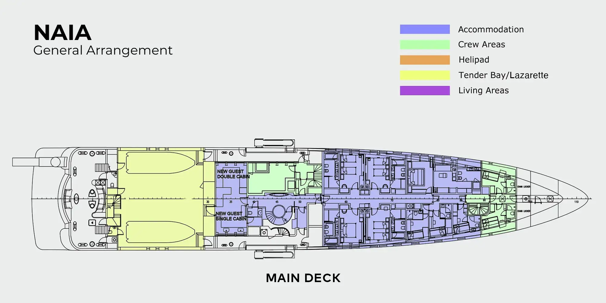 With her first class crew, comfortable accommodation and varied range of amenities over four guest decks, NAIA promises her guests an extraordinary charter that will surpass your expectations.