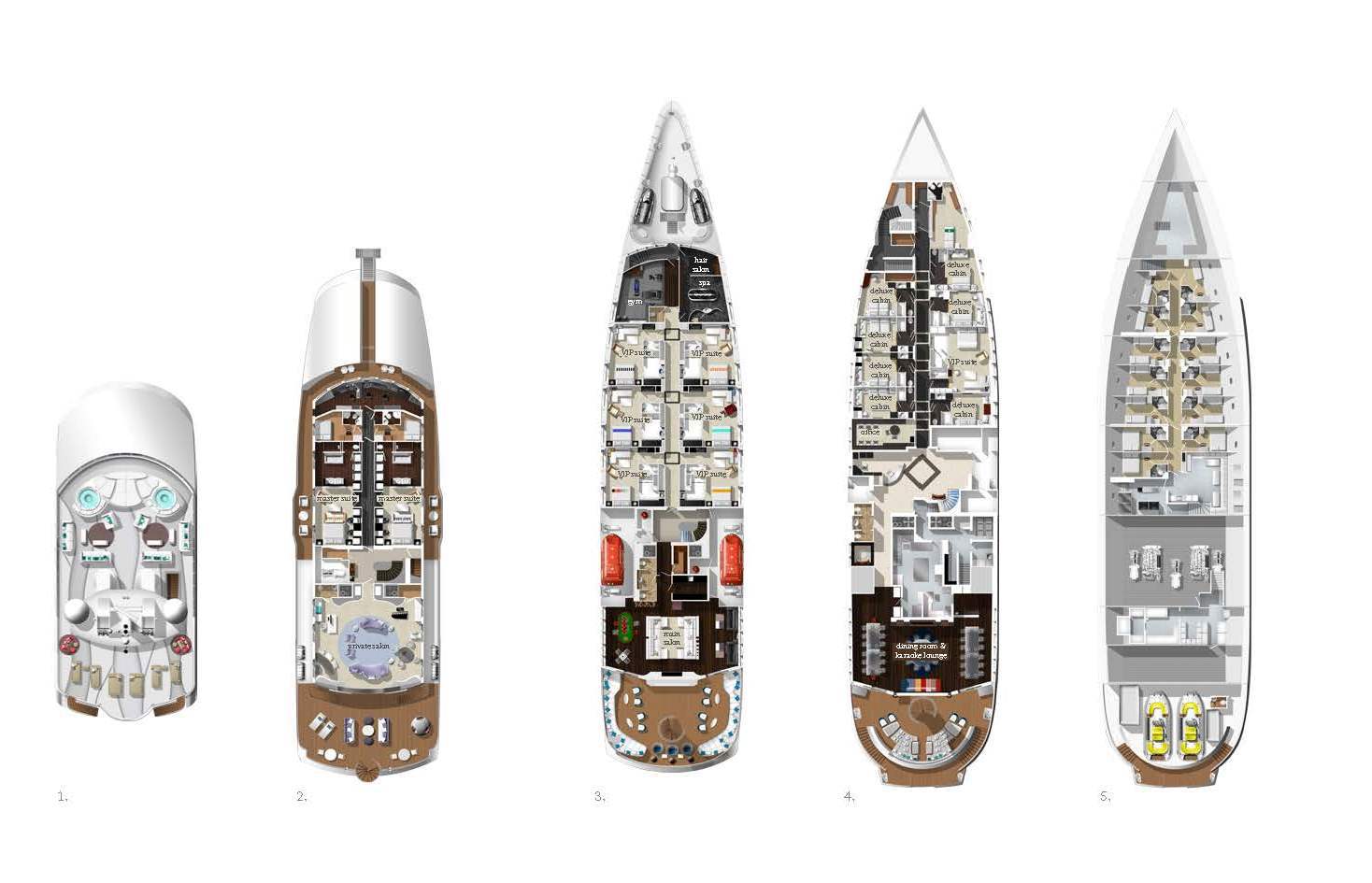 - Six VIP cabins