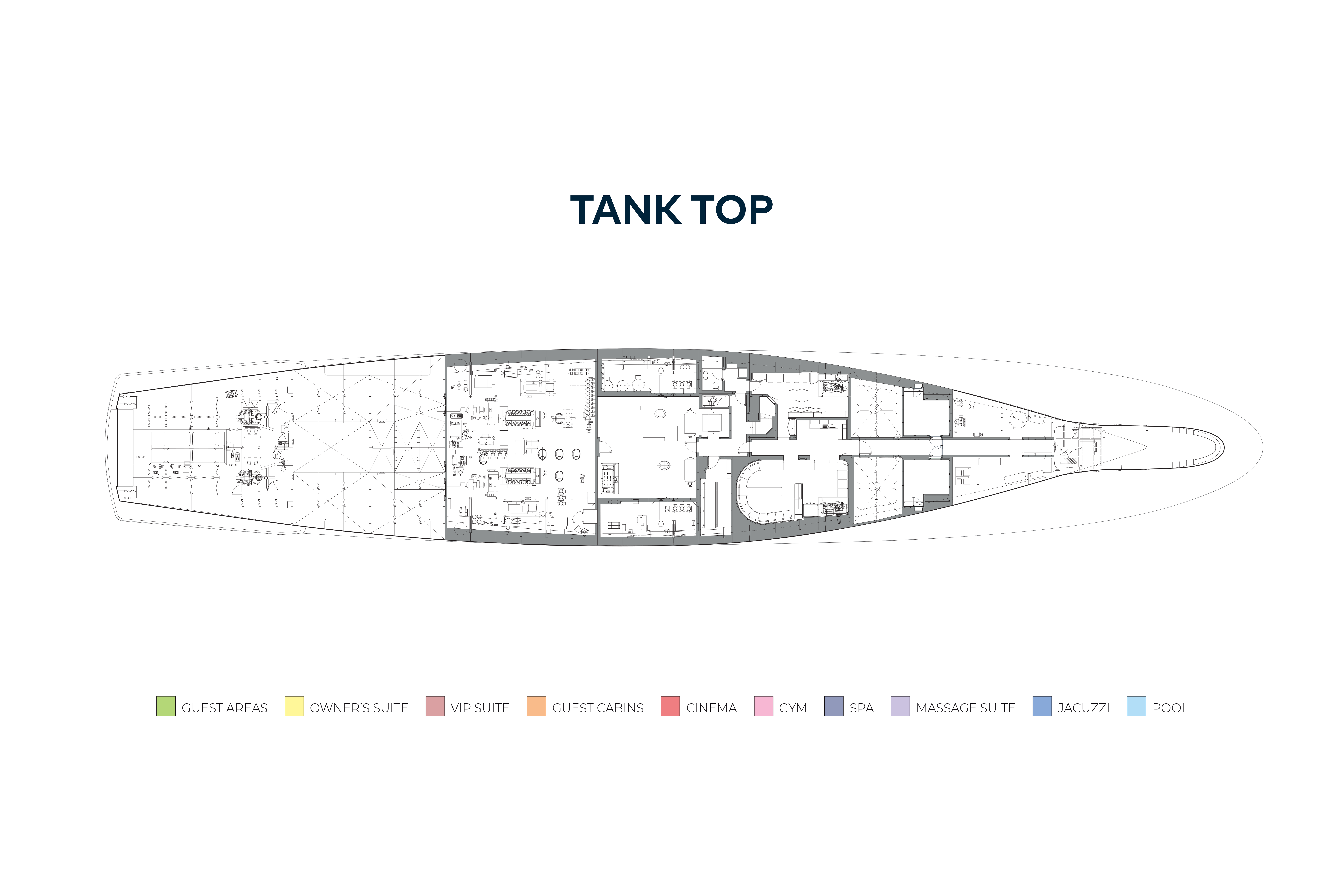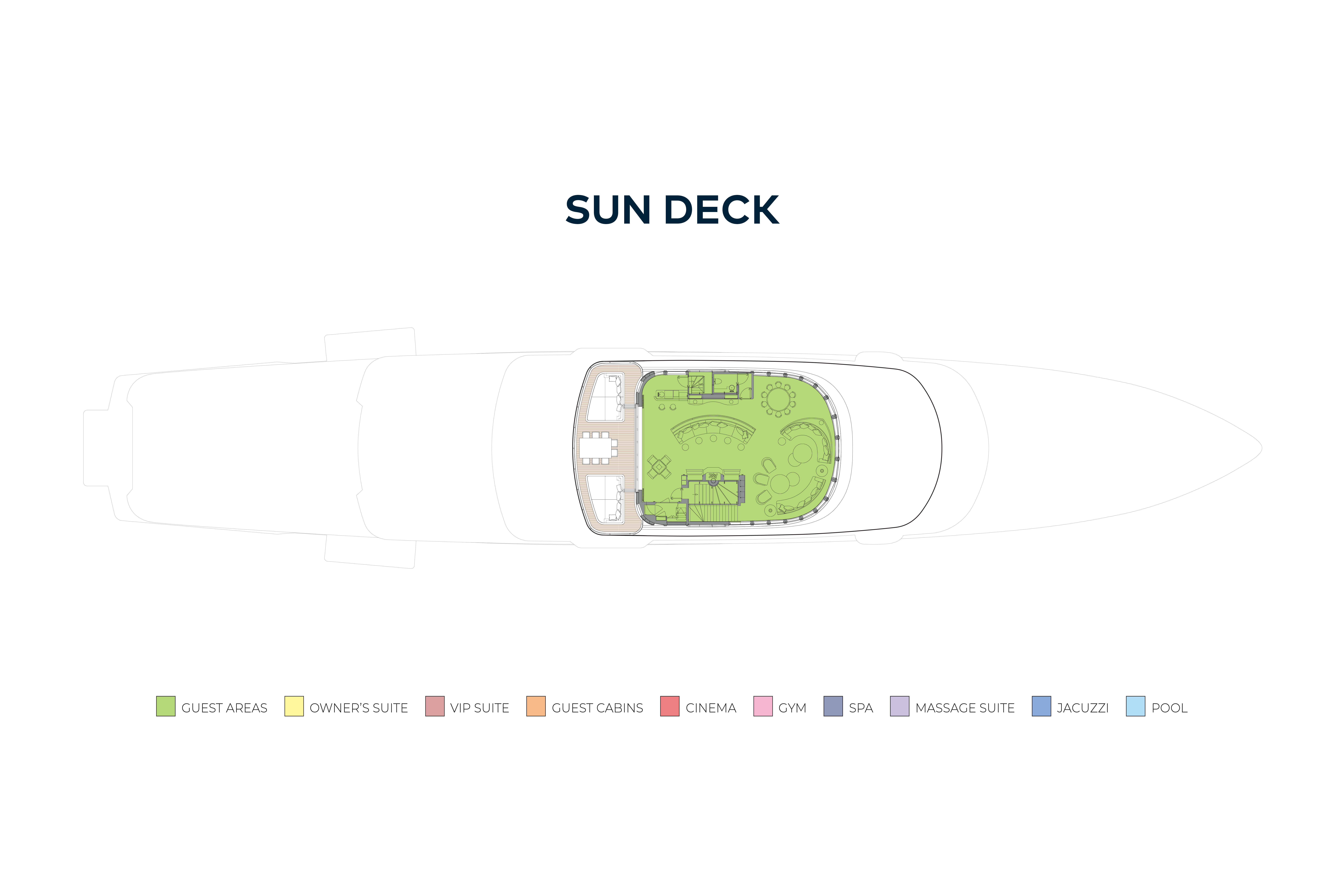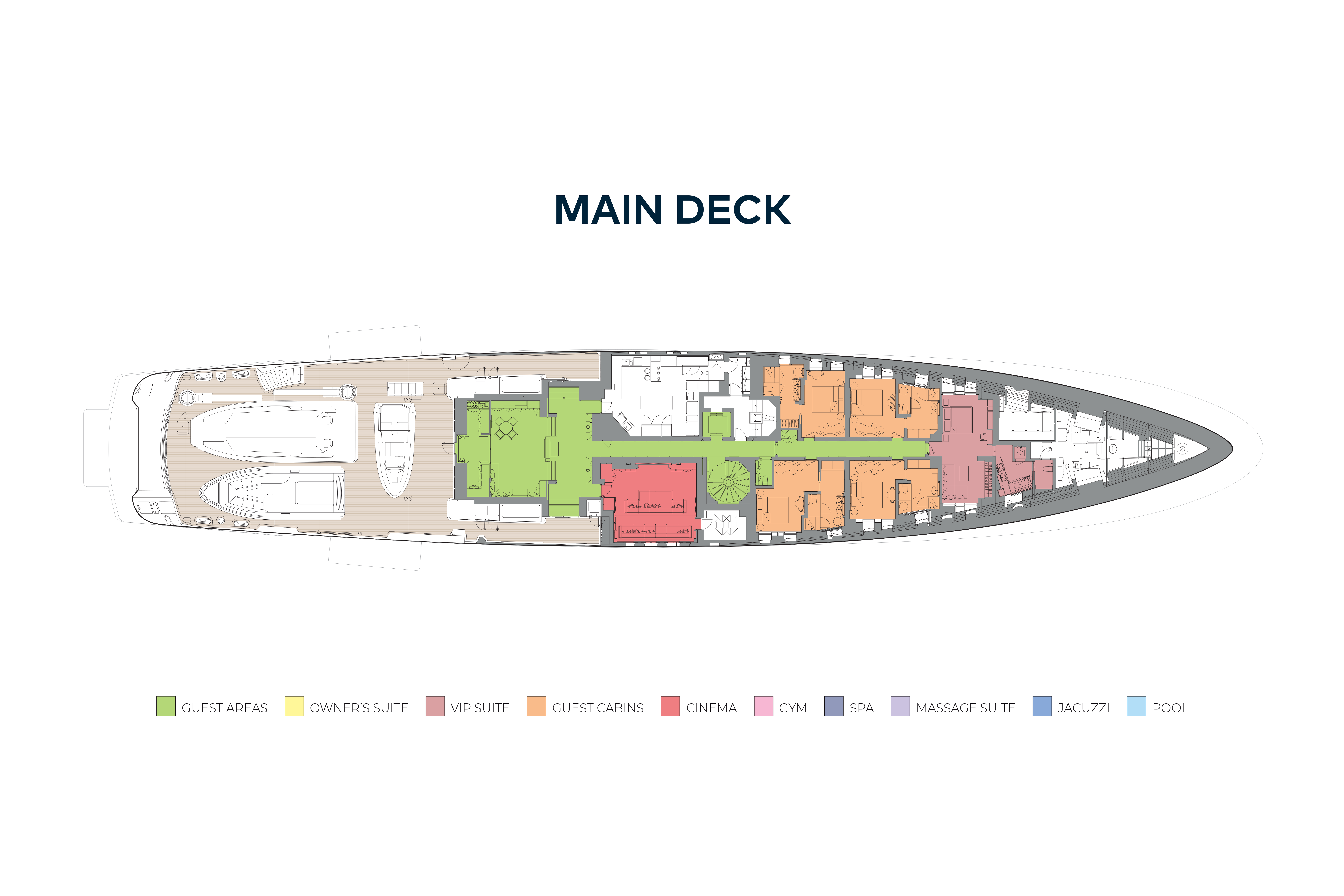 On the sun deck there is a cigar clubroom complete with working fireplace and its own wine cellar and humidor. Other entertainment spaces include the sit-up bar and lounge in the beach club, upper deck's helipad and the main deck aft presents a huge, versatile area when three of her four tenders are launched.