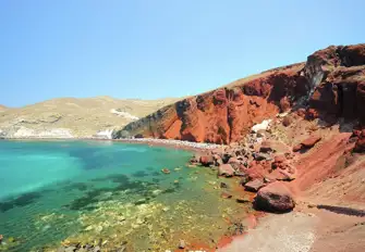 Unmistakably unique with its red cliffs, rust-coloured sand and volcanic landscape, Kokkini is as distinctive as it is striking. Sitting in stark contrast to the sapphire waters that lap its shoreline, it is one of Santorini’s star attractions.