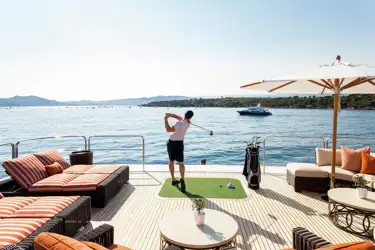 Whether you’re a golfing pro who can’t get enough or just like the novelty of teeing off at sea, the chance to charter a superyacht with its very own driving range introduces a whole new level of luxury. Work on your game at your private onboard driving range located on the swim platform or upper deck. With biodegradable golf balls that include fish food in the mix, it’s about maximum pleasure, minimal impact.