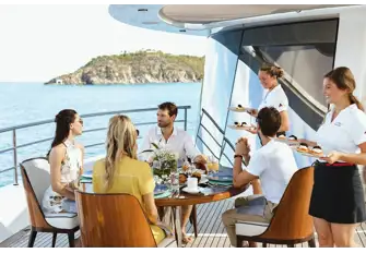 We were very demanding. A big focus of the shoot was food and food preparation in the galley, wanting sushi in the middle of the day under the blazing sun, needing to shoot breakfast at 4pm, they were just so accommodating whatever we needed. We were staying on board too so all the interior crew were really helpful in making the cabins look constantly amazing. Definitely one of the best crews we've worked with to date.