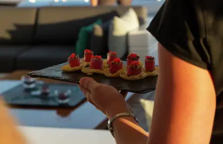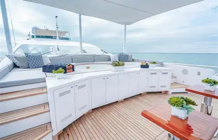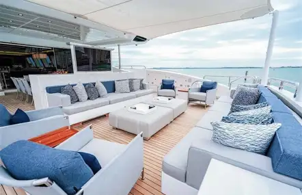 The foredeck lounge is the perfect spot to sip and snack as the sun sets