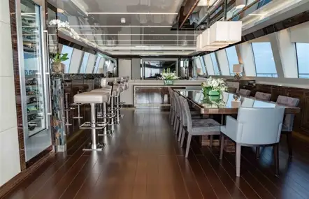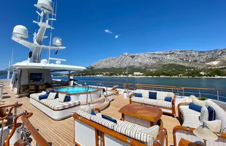 With availability this winter and New Year, she is the perfect yacht on which to make the most of the great outdoors, with a mosaic-lined jacuzzi surrounded by cushions on the sun deck, and plenty of al fresco lounging and dining areas in different areas of the yacht. She also has a large beach club allowing for easy access to her watertoys, and, as an approved RYA training centre, you could even learn a new skill for the New Year.