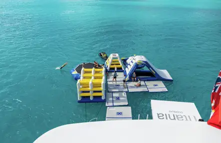 The 73m (239.5ft) TITANIA is available in the Caribbean and The Bahamas this winter. Built for the al fresco lifestyle that these islands demand, TITANIA has intimate spaces for guests to relax and get away from it all, as well as spacious entertaining areas. And for those who simply buzz with the energy of the holiday season, a complete waterpark can be deployed from her beach club, which also converts into a nightclub to continue the celebrations into the night. If this wasn’t enough, she also has one of the largest superyacht slides ever built, standing 13m (42.7ft) tall and running from the dizzying heights of the sun deck.
