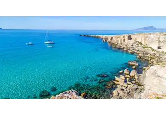 Off the western tip of Sicily, Favignana Island is part of the Egadi archipelago. It's beautiful, authentic and quite a change of scenery for a yachting destination. Good food, calm waters. We anchor at Isola Preveto.