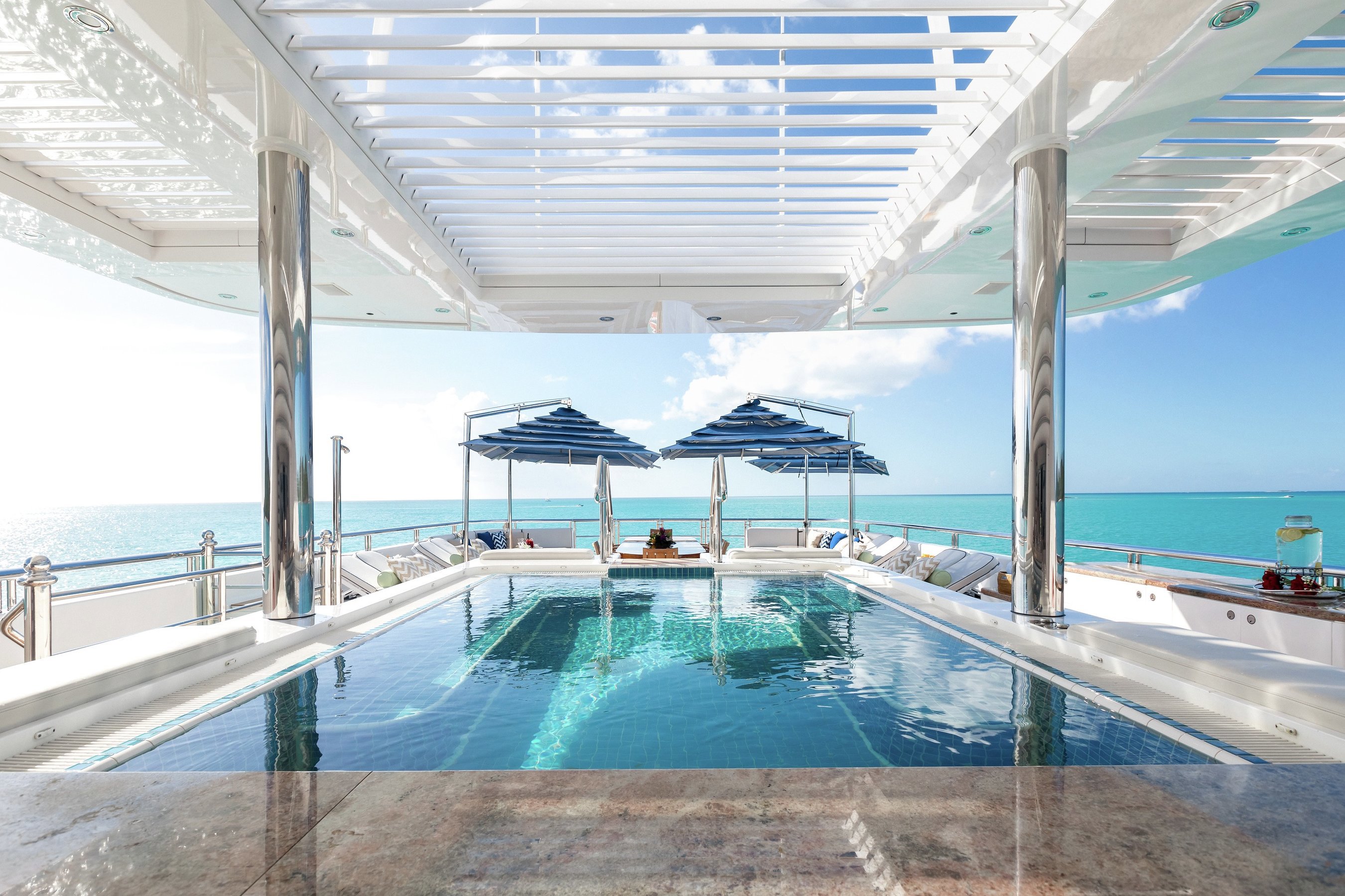 Full beam main deck master with private balcony, large sun deck with BBQ and jacuzzi, dual aspect beach club with swim platform and sea terrace