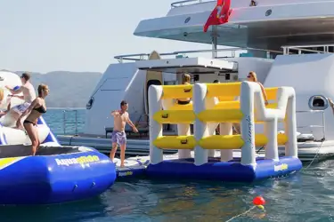 Alongside the various fast and fun activities like wakeboards and jetskis, there are family-friendly options like the superyacht inflatable toys, stand-up paddleboards and a vertiginous inflatable slide from the top deck.