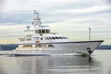 The 52m (170.6ft) motor yacht ICE BEAR has a steel hull and aluminium superstructure built to ABS classification and delivered by legendary Dutch shipyard Feadship, De Vries in 1988. This 614GT yacht has exteriors by De Voogt, Paola D. Smith interiors and received a stern extension in 1995 to create a sport fishing platform.