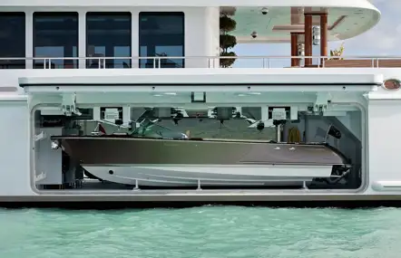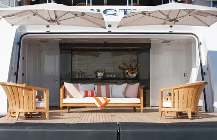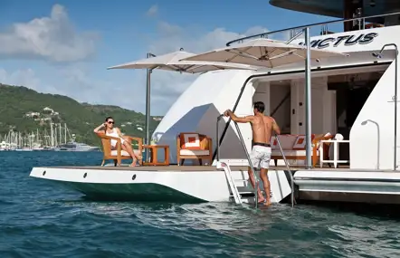 ‘When it comes to watersports, INVICTUS is no slouch. Her tender garage houses a tender, jetskis, SeaBobs and there's plenty of space for all the other tricks and toys you might want. There’s a beach club seating area and dayhead, plus a huge, extending swim platform where guests can enjoy all the watertoys.’