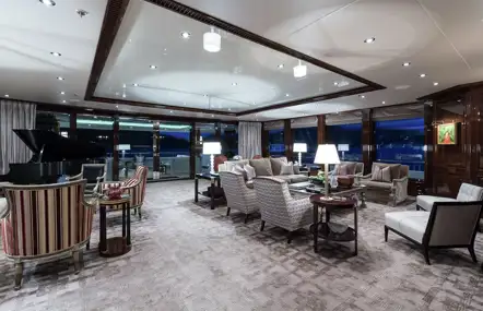 Her interior comes from the design house Johnson Wen/Mulder & Associates. You can see their signature touch in finishes such as the Lalique bar and the cinema with raised stadium seating.