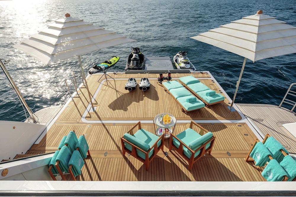 One of the first Burgess yachts to feature a hybrid propulsion system, 49.8m (163.3ft) HOME provides silent cruising in guaranteed comfort. A dedicated air conditioned gym makes fitness a breeze even on hottest of humid days, while the jacuzzi on the sun deck is the perfect location to kick back at the end of a long day of watersports. RAMBLE ON ROSE has a stunning beach club at sea level, making it a go-to family yacht for charter. The array of waverunners, stand up paddleboards, underwater scooters and inflatables makes watersports a daily activity on board ELYSIAN.