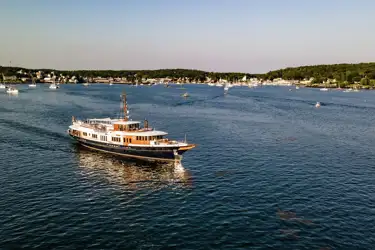 Whether you’re celebrating a special occasion with an opulent banquet in the club-style wood-panelled dining room, complete with balcony, or sitting in the shaded aft deck lounge while sipping a sidecar from the saloon’s marble-topped bar, it’s impossible not to feel this yacht’s joie-de vivre.