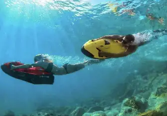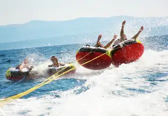 After planning the day with the captain you have a couple of hours to enjoy the watertoys. Waterskis, wakeboards and inflatable towables deliver high-speed thrills behind the yacht's powerful Williams jet tender, or enjoy some autonomous adrenaline on the jetsurfs. Want to swim like a dolphin? Try the SeaBobs. However you want to enjoy the ocean, a hydraulic bathing platform makes the water accessible to all generations.