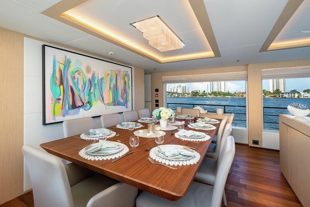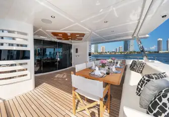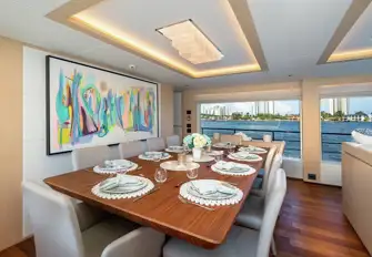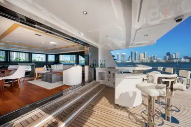 Wake up in the main deck master suite and let the morning sun pour in through huge picture windows as you anticipate the day ahead. Join the rest of the party on the main deck aft where a fragrant breakfast of juices, smoothies and freshly baked pancakes and pastries awaits. Want something specific? Just ask the crew and the chef will prepare whatever you want to order.