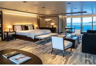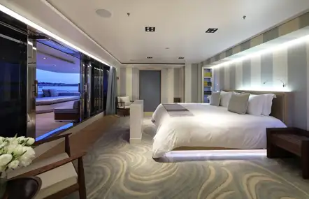 'There's also a lower deck VIP suite with its own sitting room that can be converted into a second double. There are several cabins that can be made available for staff, which families may need. With an elevator to all decks, she welcomes every generation of the family too.'