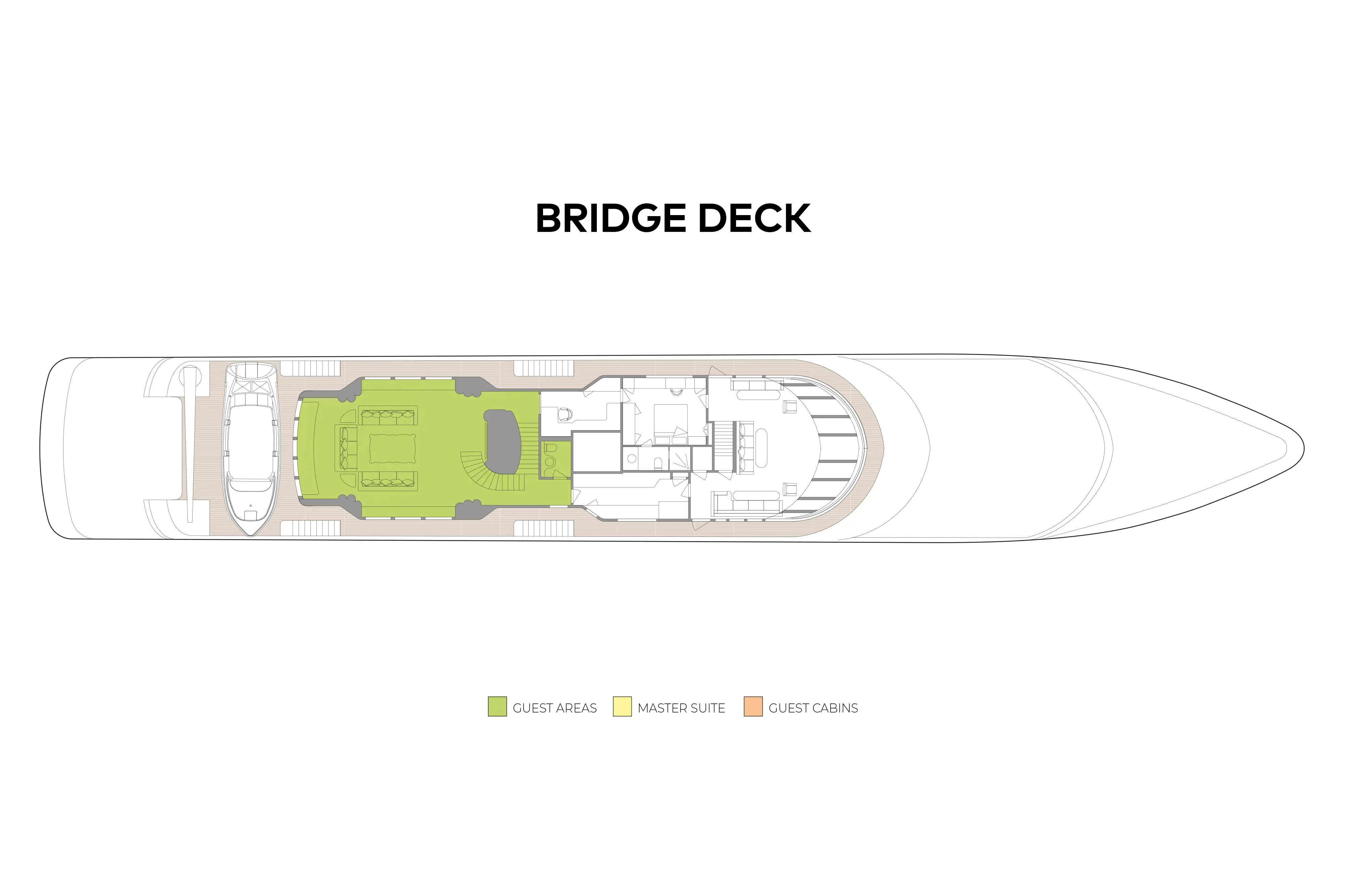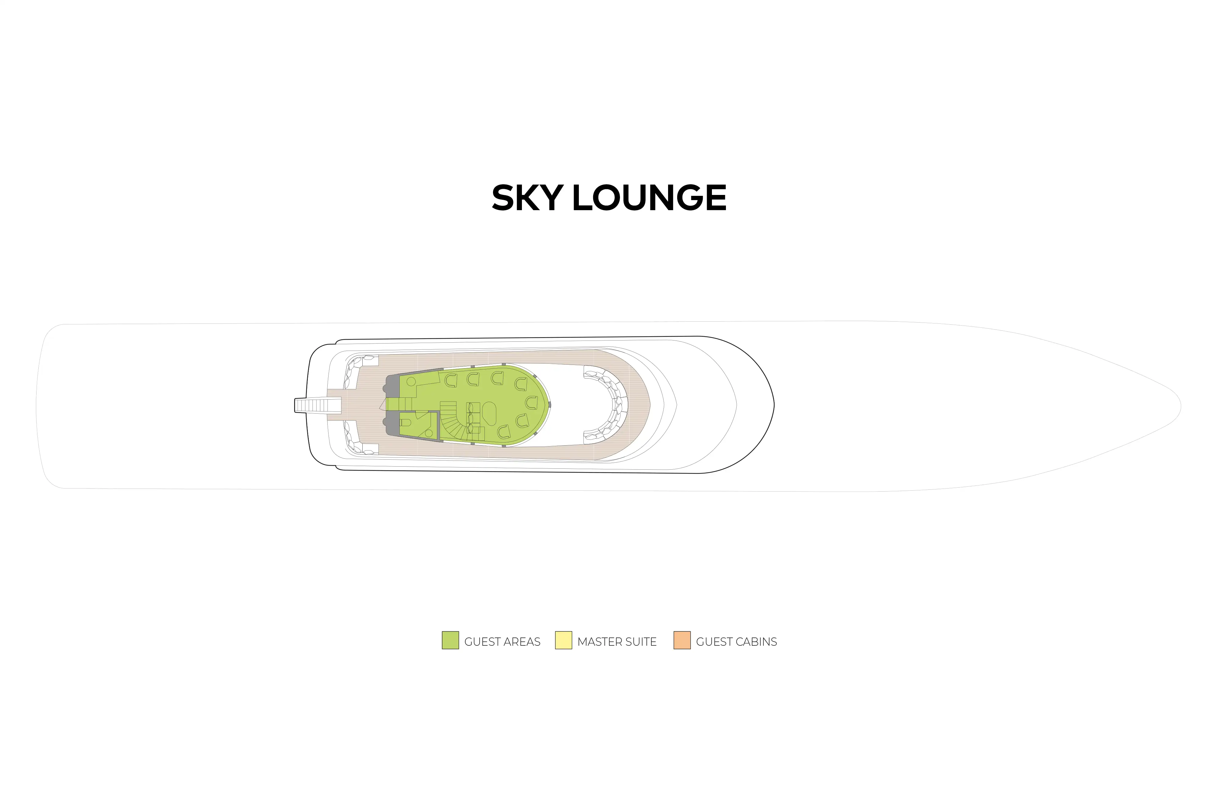 Guests can enjoy relaxing while underway in the sky lounge, or gathering for a meal in the main saloon where they will find a soothing neutral colour pallet balanced by large windows for an airy feel. An observation lounge is also located on the upper deck, where guests can congregate over cocktails and take in the views after a long day on the water. The exterior main deck offers two fixed fishing chairs, a range of seating, and a crows nest with outdoor helm station.
