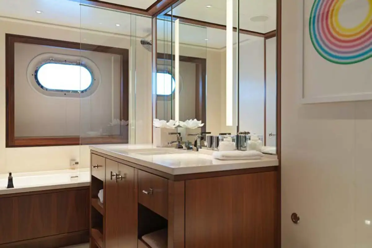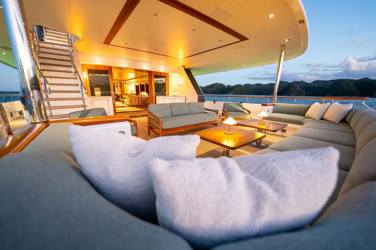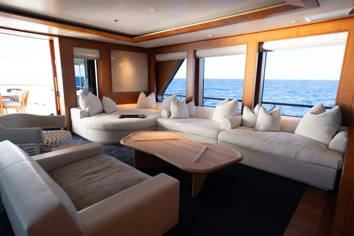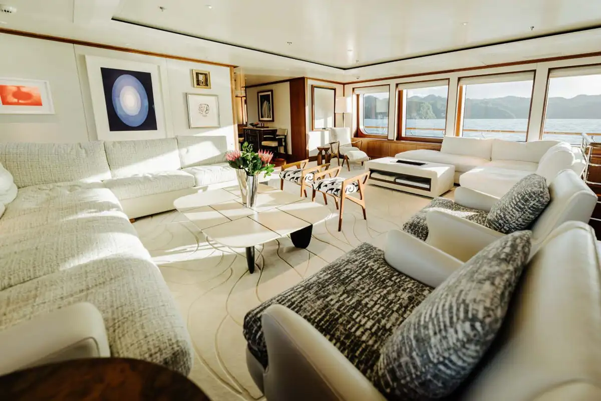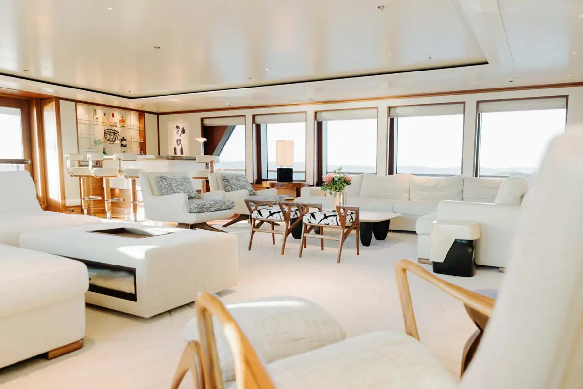 Showcasing an extensive 2021/22 refit with luxurious interior styling, the yacht presents well ahead of her time. Her bright and welcoming interior has a sophisticated theme with impressive large picture windows precious woods, stone, and metals throughout. Reflecting the owner’s keen eye for design, attention to detail and sociable lifestyle, the yacht stood out as providing the ideal atmosphere to enjoy al fresco living on the water, and went on to win the 2019 International Yacht & Aviation Award for Best Deck Design.