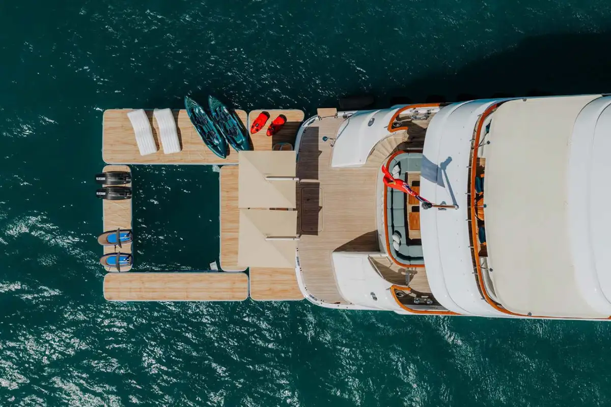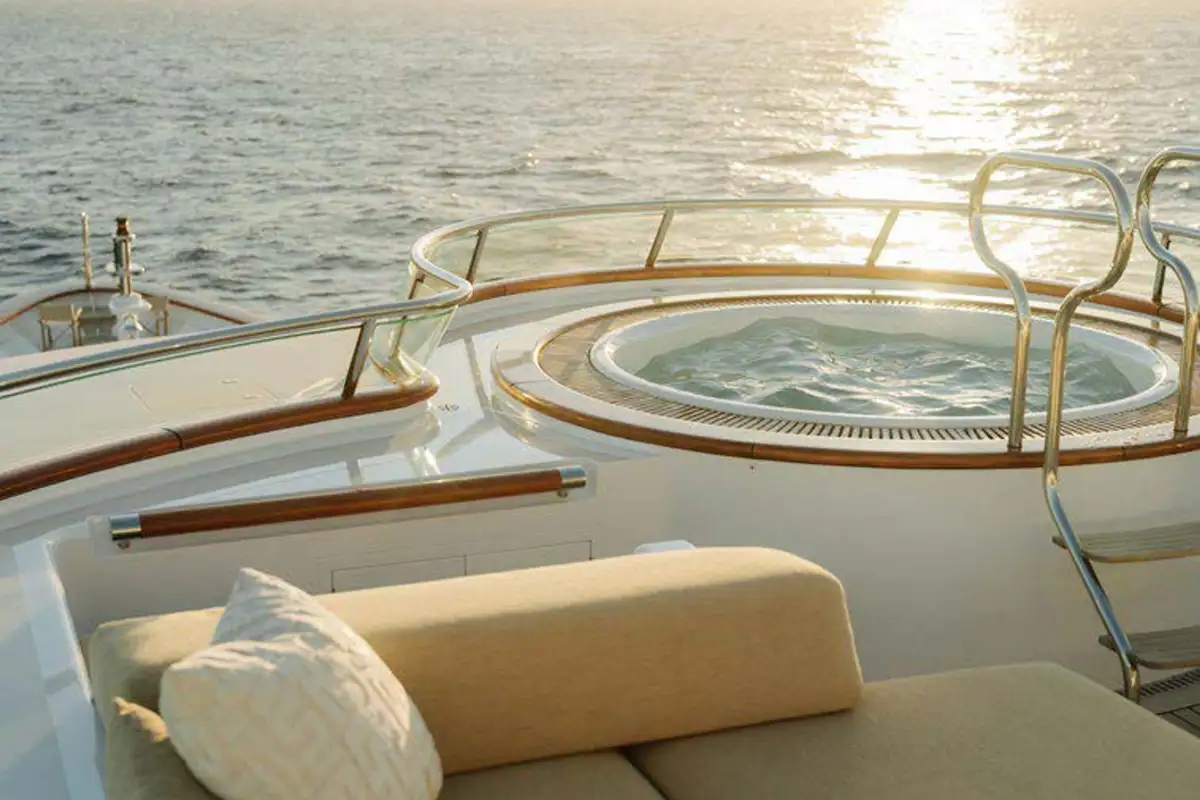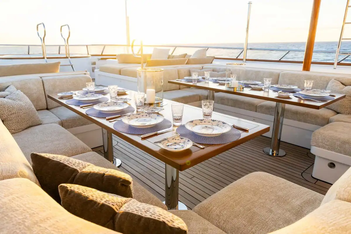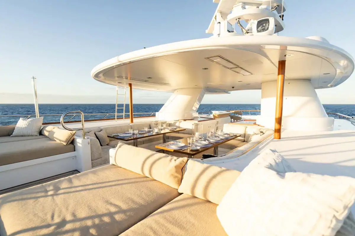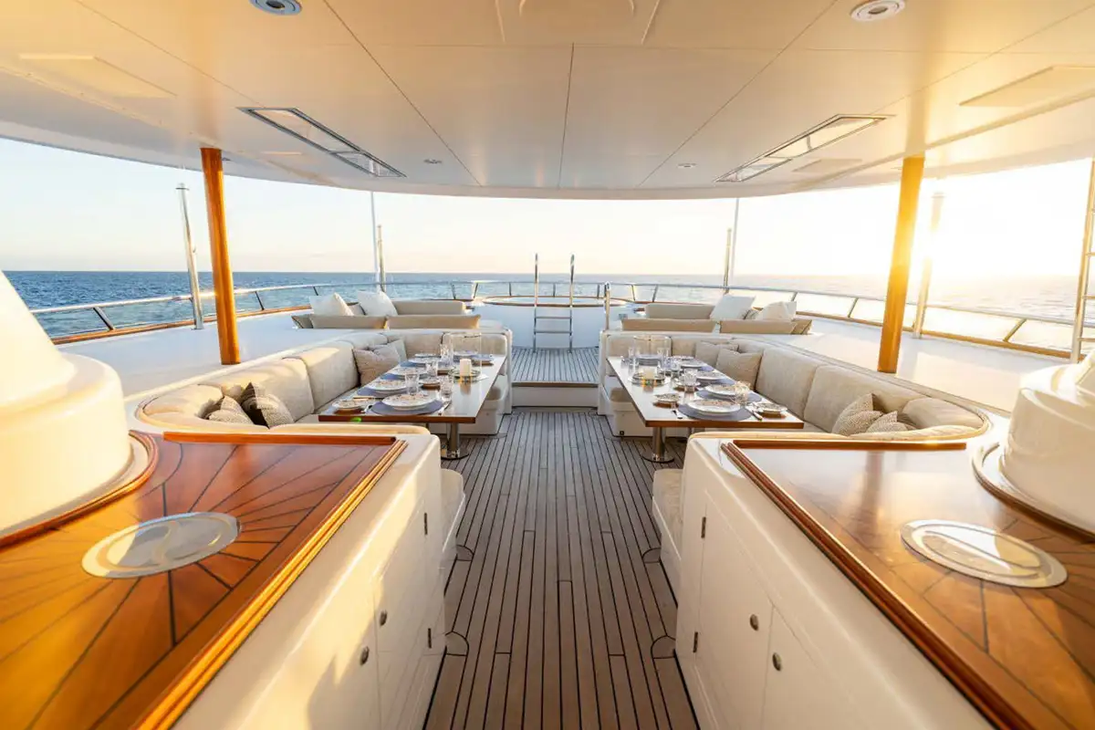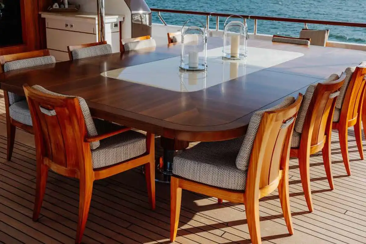 Showcasing an extensive 2021/22 refit with luxurious interior styling, the yacht presents well ahead of her time. Her bright and welcoming interior has a sophisticated theme with impressive large picture windows precious woods, stone, and metals throughout. Reflecting the owner’s keen eye for design, attention to detail and sociable lifestyle, the yacht stood out as providing the ideal atmosphere to enjoy al fresco living on the water, and went on to win the 2019 International Yacht & Aviation Award for Best Deck Design.