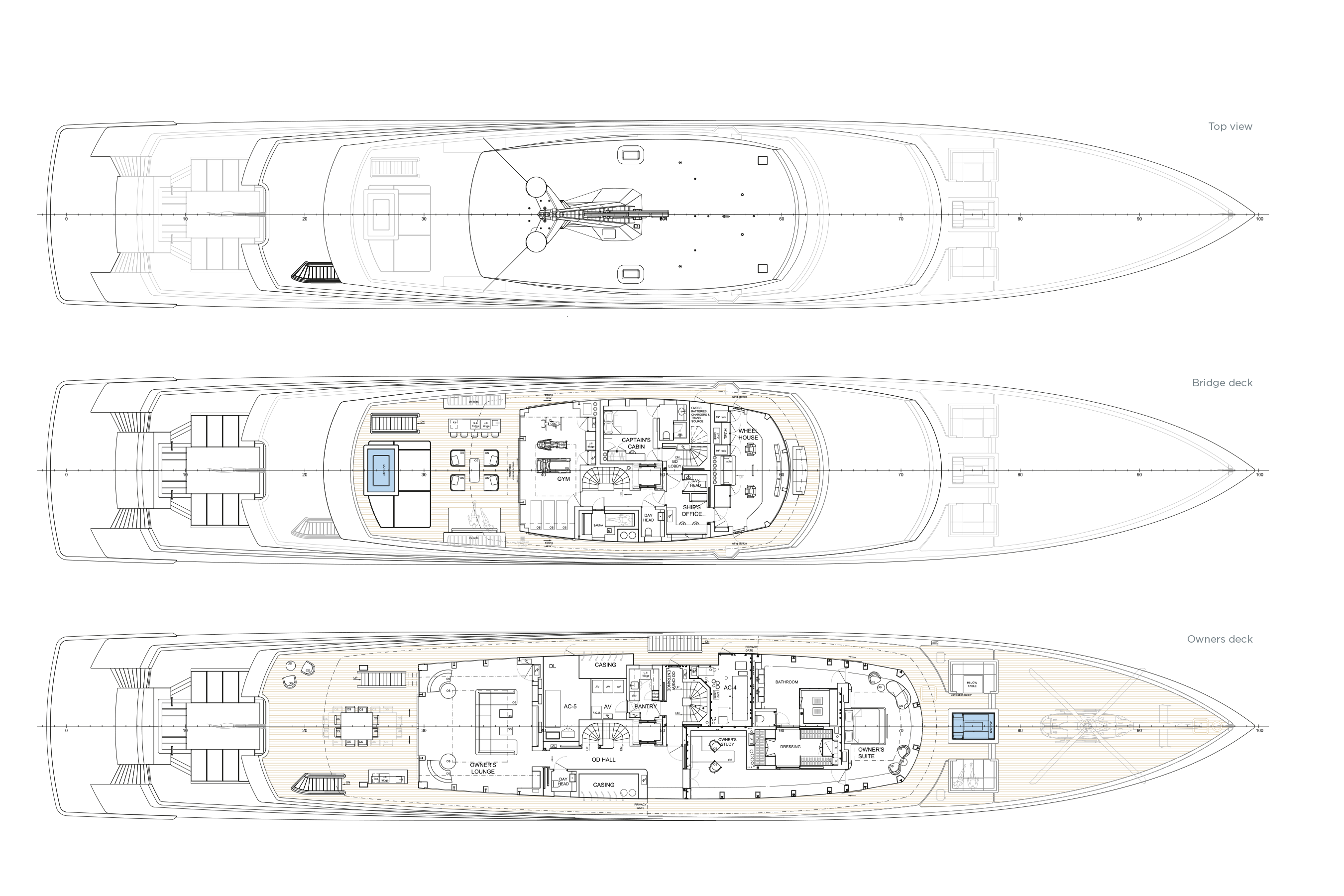 | Annexes | Space for a 9.8m tender, rescue tender and toys to be stored forward on main deck forward |