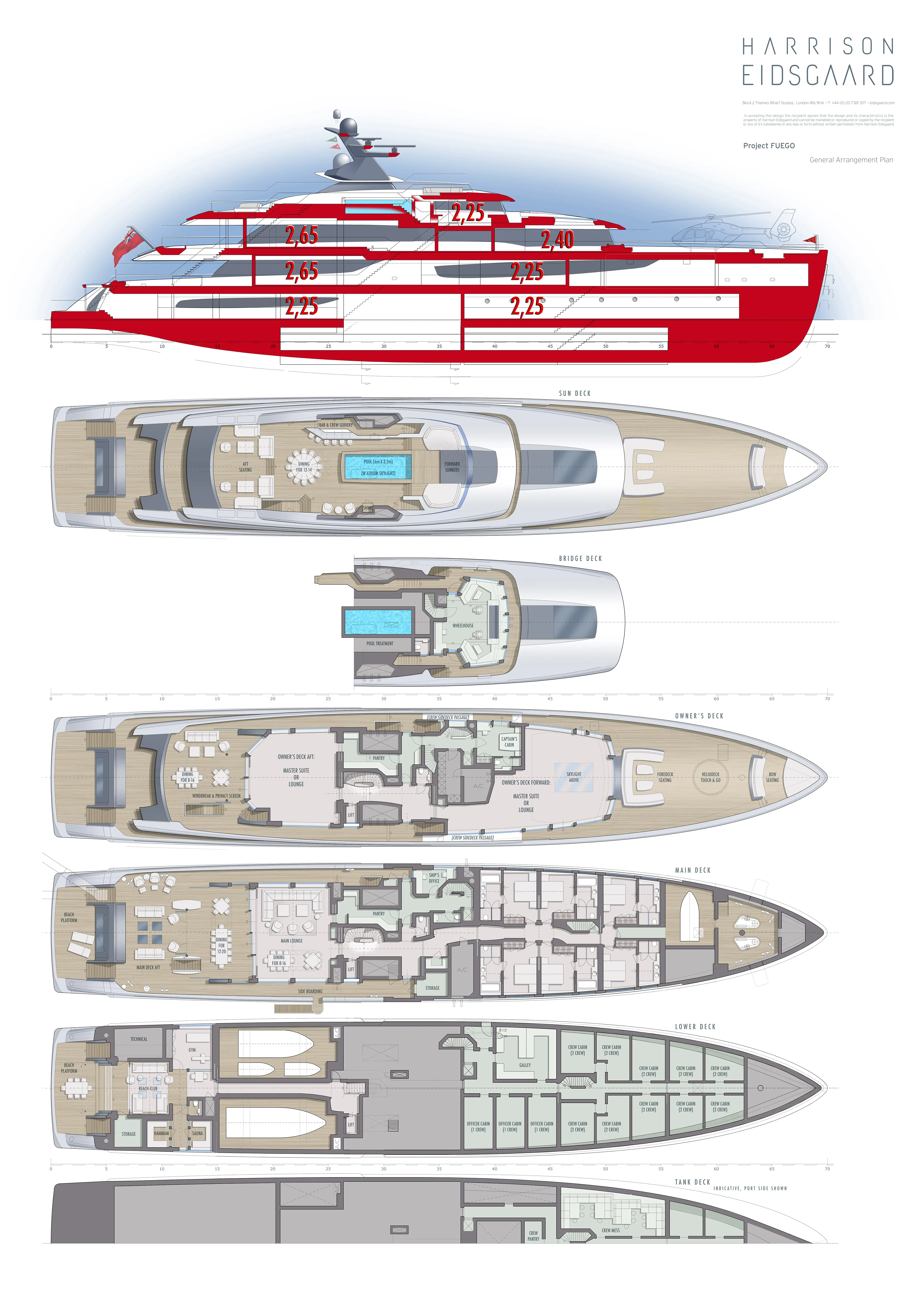 The 70m (229.6ft) PROJECT FUEGO is a unique new build project designed by Harrison Eidsgaard with Burgess as commercial and build consultants.