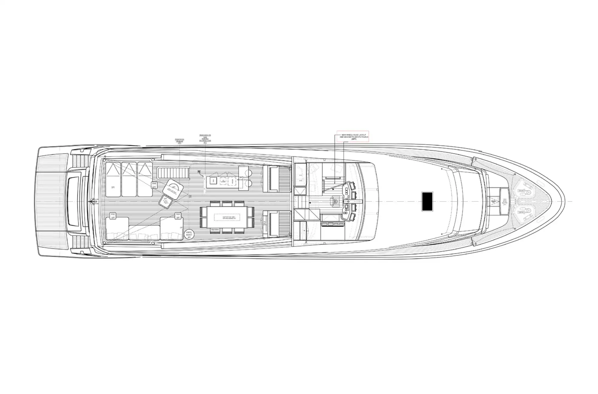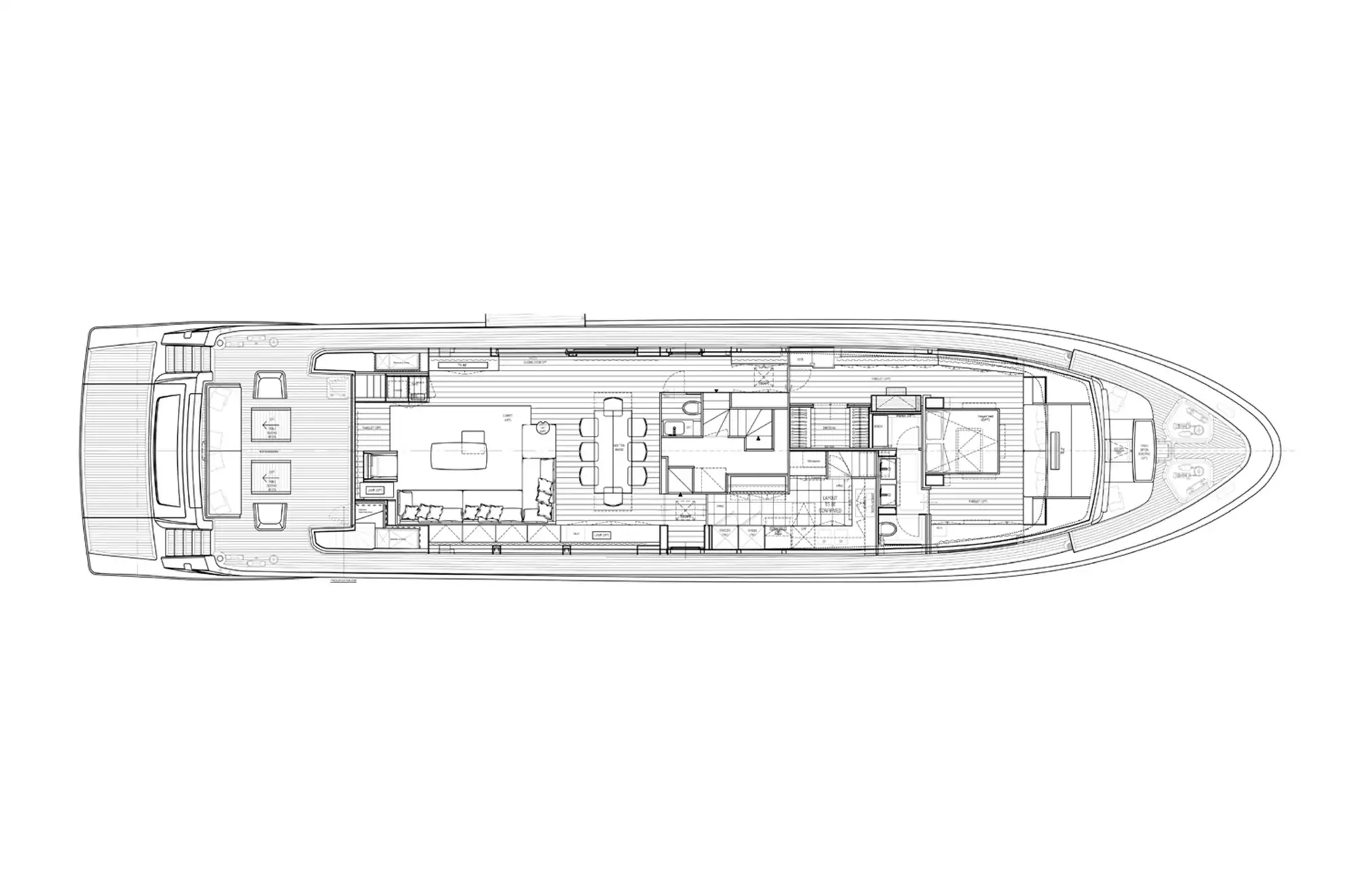 - Spacious flybridge with helm station, al fresco dining, wet bar, and sun loungers