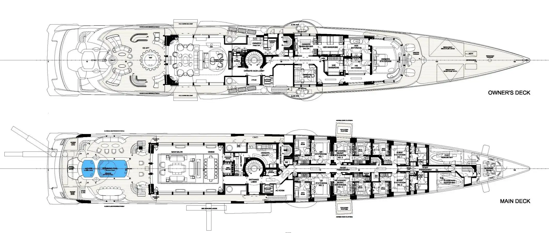 - Jacuzzi and pool on the main deck