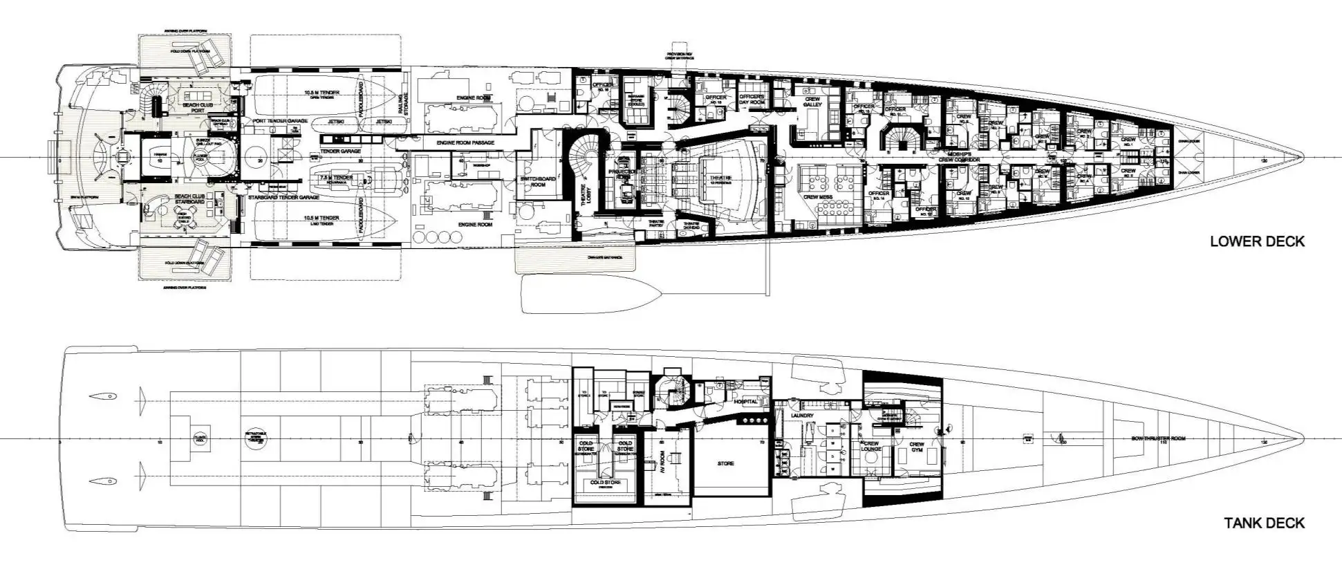 Her multiple special features include an IMAX Dolby cinema, nightclub, fully-certified helipad, a sophisticated beach club with hammam and plunge pool which sits beneath the glass-bottomed swimming pool.