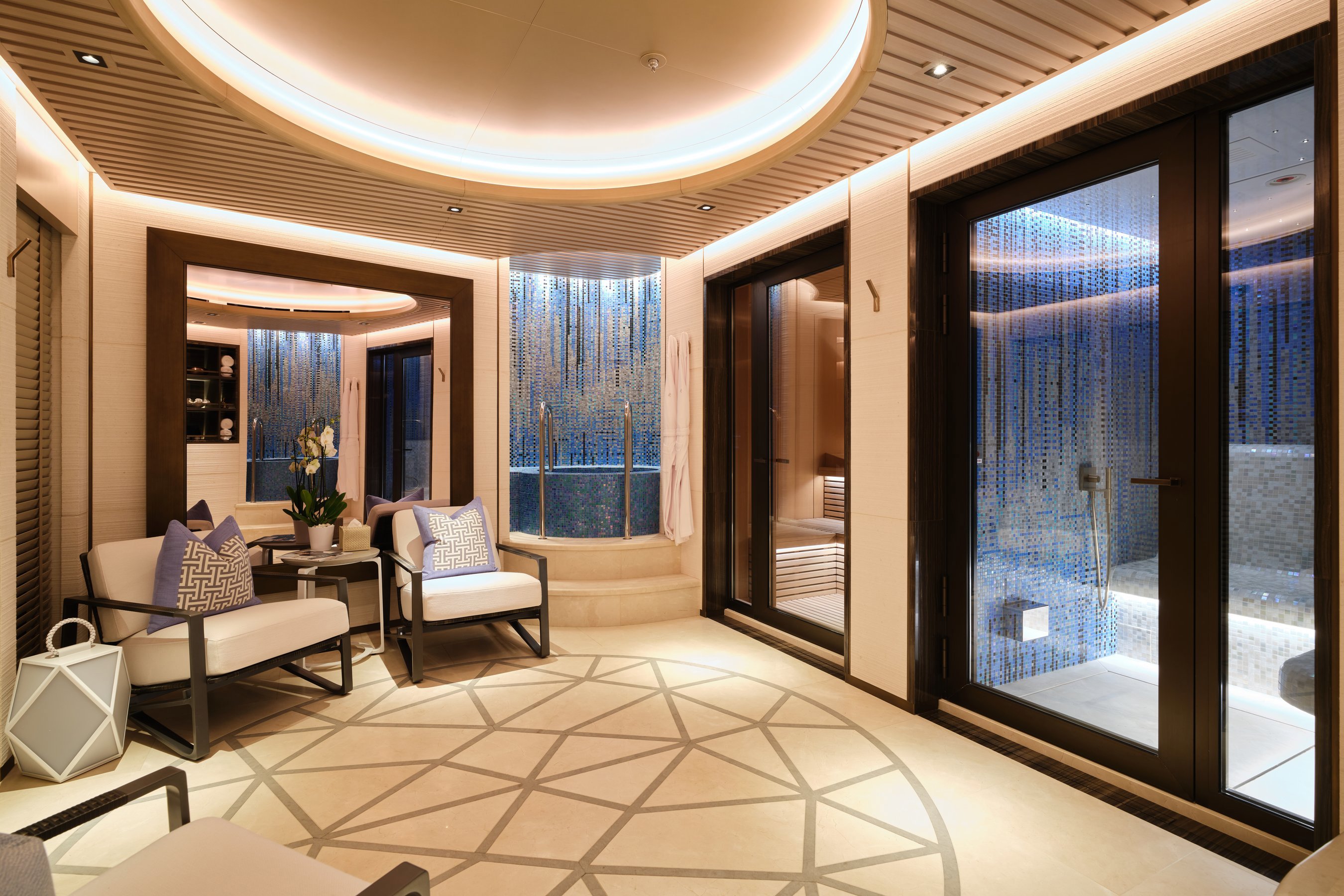 Whether you land by air on the foredeck helipad or by sea in a fleet of custom tenders, you’ll know you’ve arrived. Her guest accommodation is uniquely flexible, including doubles, twins and cabins that convert into suites, welcoming parties of all kinds with consummate ease. An elevator serving all decks makes her the perfect choice – indeed the only choice – for large, multi-generational groups.