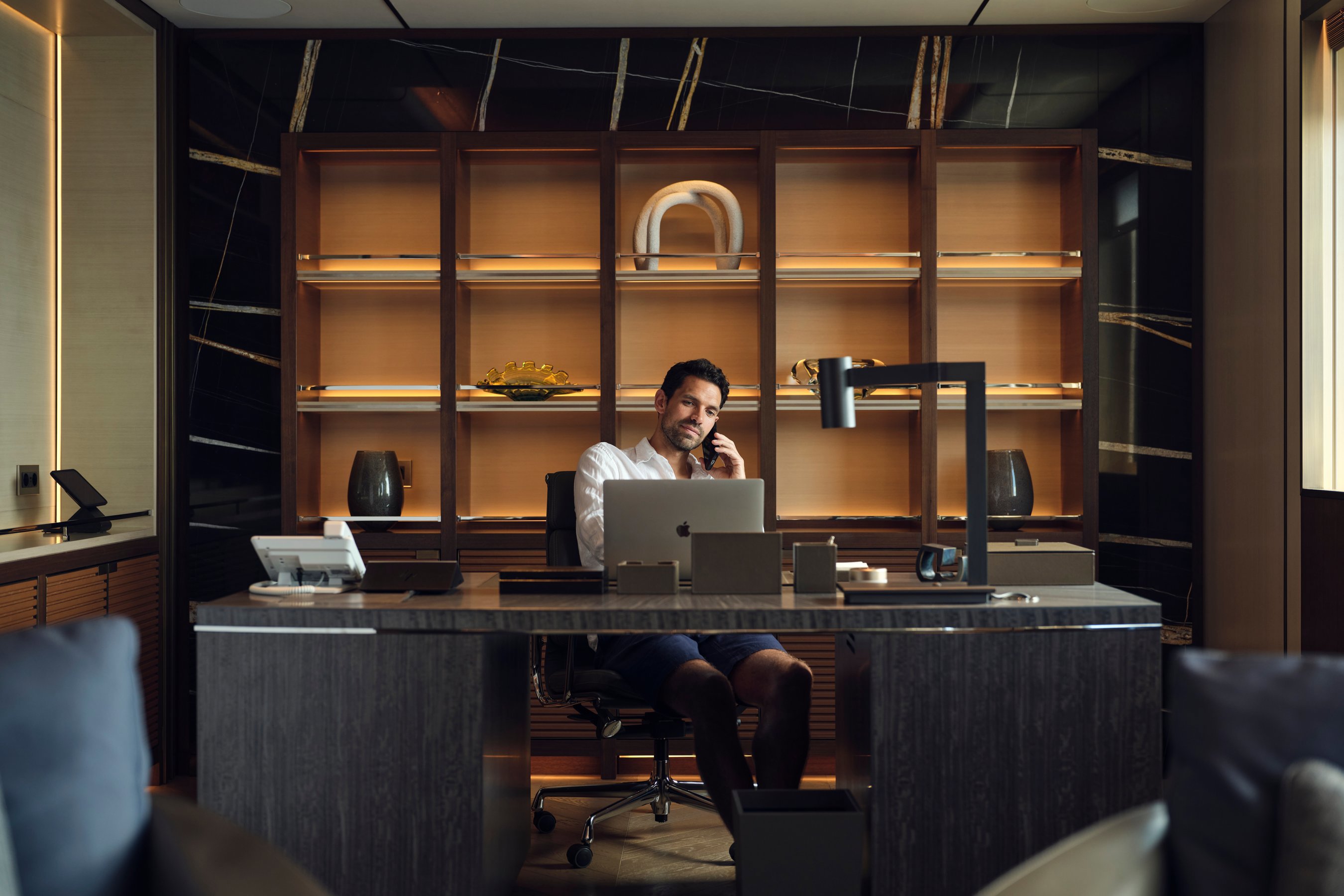 On the private owner’s deck, a palatial 60sqm (646sqft) stateroom has commanding views, there are his-and-hers walk-in wardrobes, his-and-hers bathrooms, both with side deck access, a media room and a lounge with bar and private dining. On the private terrace forward there is a jacuzzi for six, sun loungers and lounge seating, while you can host private dinner parties for up to 12 guests on the aft deck.
