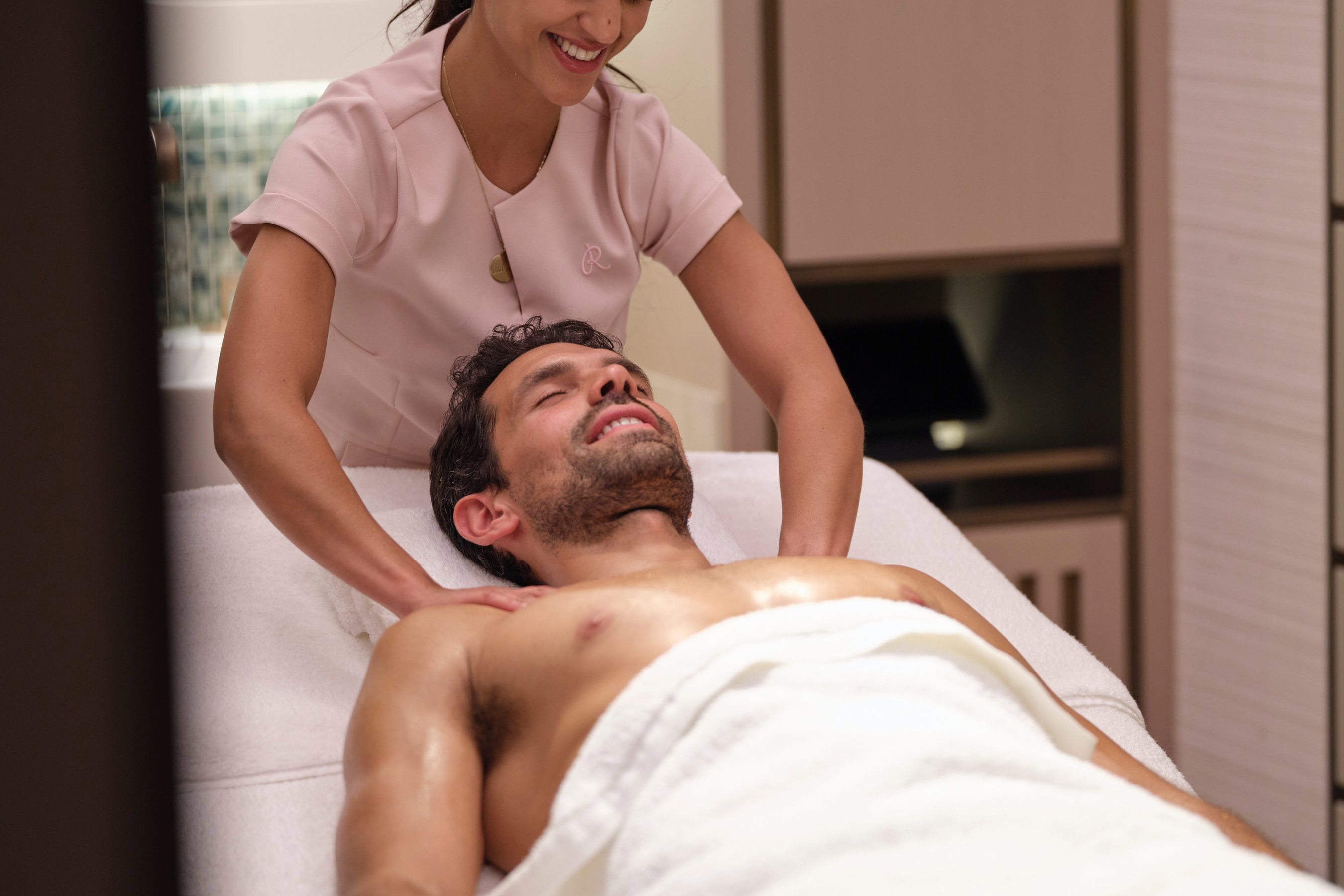 Her spa deck is a revelation. The fitness centre has a vast gym with an equipment list that would amaze an elite athlete. There’s a ballet bar and mirror for stretches and yoga areas inside and out. After dipping into hot and cold plunge pools, unwinding in the steam room and sauna and sitting on the balcony with its ocean views, you have two treatment rooms, hair and beauty salons too.
