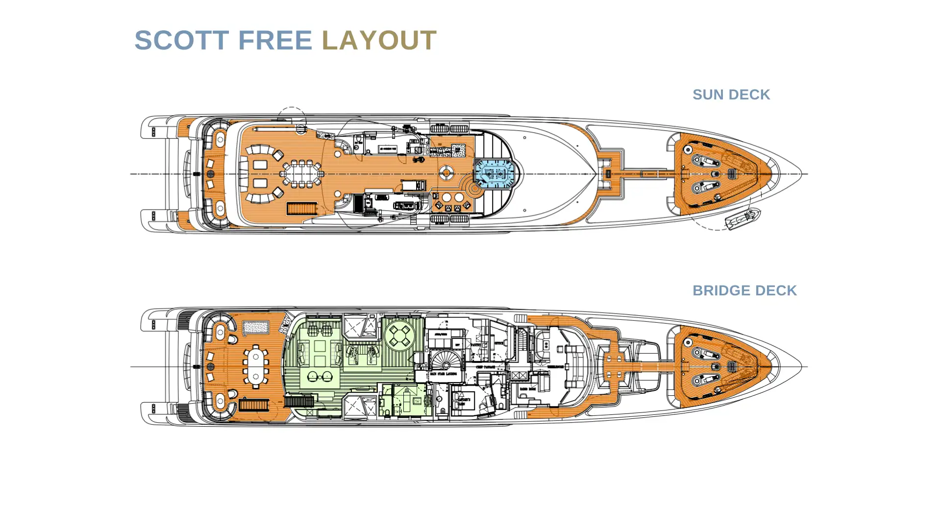 Having completed a circumnavigation of the world under her first ownership, SCOTT FREE is now a proven and highly regarded charter yacht and has been maintained to the very highest standards. She offers a highly flexible accommodation layout with master suite on the main deck, and four guest cabins on the lower deck (two king size beds, two queen beds which can also be set up as twins), and one multipurpose cabin on the bridge deck with two pullman berths. The four lower deck guest cabins are also interlinked so can be set up as two full beam VIP suites complete with lounge area.