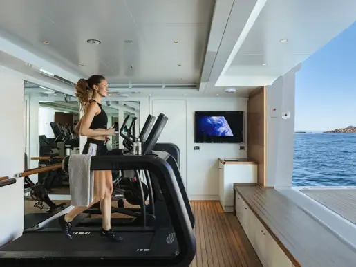 With so much to do on board, you need never set foot ashore. Get your pulse racing with a workout in the indoor/outdoor gym, complete with fresh air and sea views, dive off the swim platform or jump on a jetski for a rush of breathtaking speed. Lower the tempo in a choice of sunbathing spots on the sun deck - stretch out on a lounger on the vast, uncluttered aft area, take a refreshing dip in the jacuzzi forward, surrounded by sun pads, or climb to the observatory deck with its incredible 360 degree views.