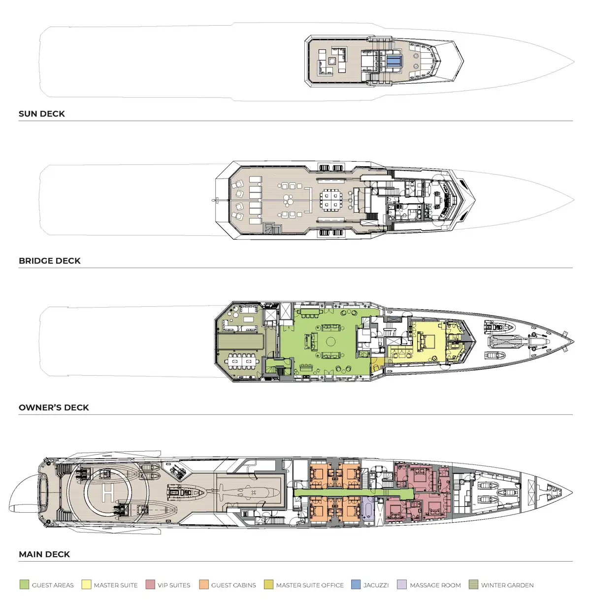 - 400sqm (4,300sqft) signature aft deck