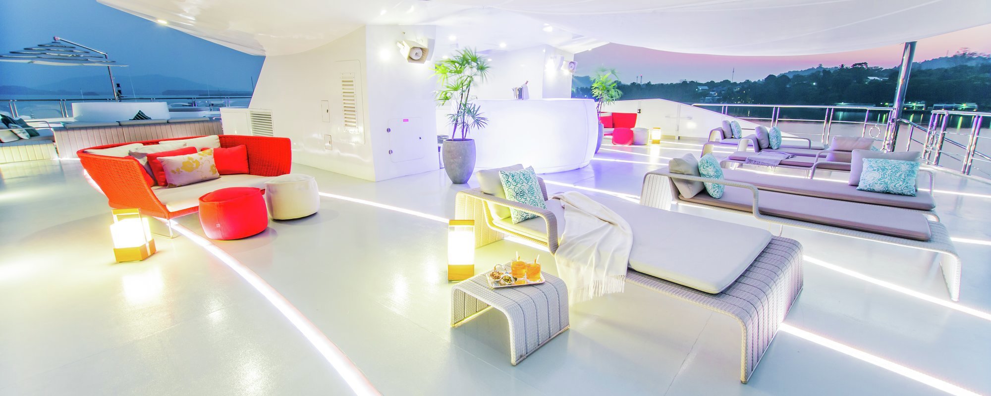 While the day is spent unleashing adrenaline, evening entertainment doesn’t get much better than a movie night under the stars or a drop down cinema in the sky lounge. From sun deck projectors to lower deck cinema snugs, watching the silver screen while living the charter dream is bucket list activity. Throw in some Dolby chairs for an immersive moving experience, state of the art surround sound and a high spec flat screen and the result is out of this world.