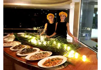 Head Chef Barry, at the barbecue, explained how he likes to theme meals from around the world. Of course, he adapts to suit the guests’ preferences and ensures that he has regular chats with everyone. He’s fascinating, very experienced, he loves to experiment and let his creativity take over.