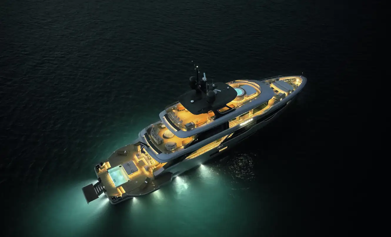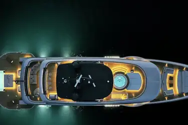 The beach terrace is unique, I can’t think of another yacht with an entirely open beach terrace area wider than the yacht. When you open the fold-out sides it’s more than 11m wide, which is something you might expect to see on a 60m yacht. Benetti has never done anything like this before. The infinity pool is also a very special feature too and the expansive windows really let the outside in, making a great connection with the ocean.